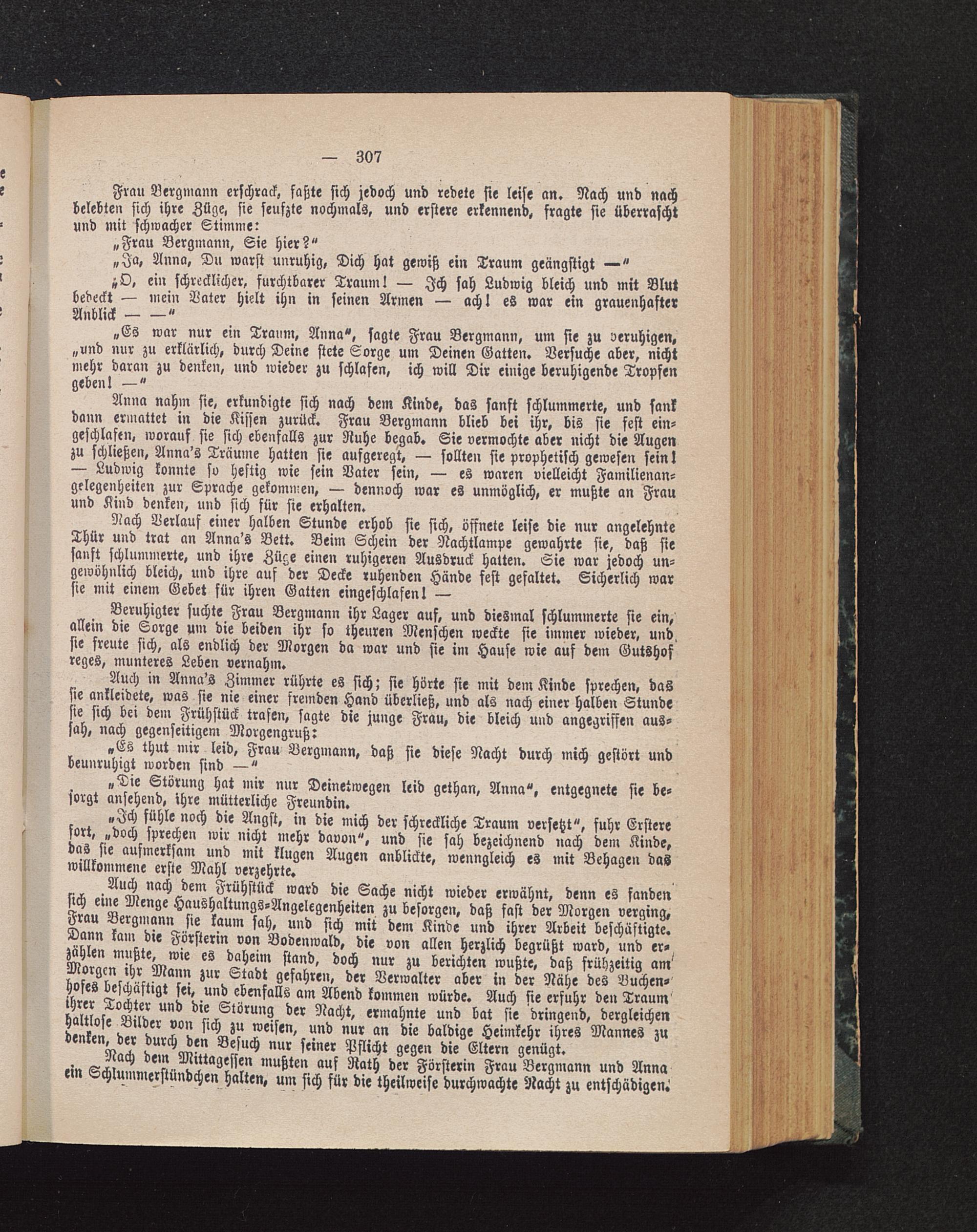 „Es war nur ein Traum, Anna", sagte Frau Bergmann, um sie zu veruhigen,„und nur zu erklärlich, durch Deine stete Sorge um Deinen Gatten. Versuche aber, nichtmehr daran zu denken, und wieder zu schlafen, ich will Dir einige beruhigende Tropfengeben! —"