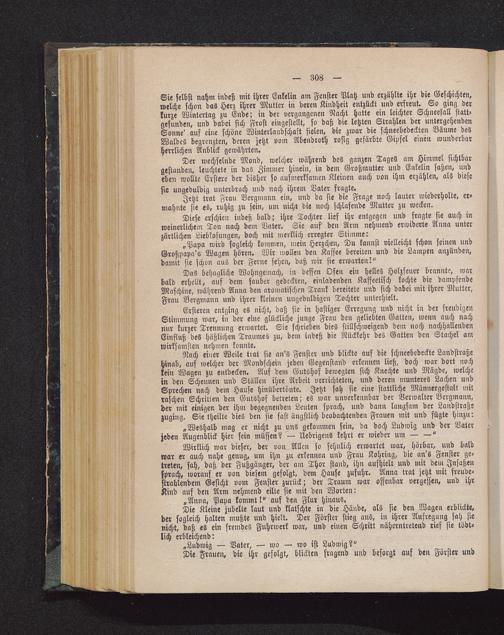 Der wechselnde Mond, welcher während des ganzen Tages am Himmel sichtbargestanden, leuchtete in das Zimmer hinein, in dem Großmutter und Enkelin saßen, undeben wollte Erstere der bisher so aufmerksamen Kleinen auch von ihm erzählen, als diesesie ungeduldig unterbrach und nach ihrem Vater fragte. '