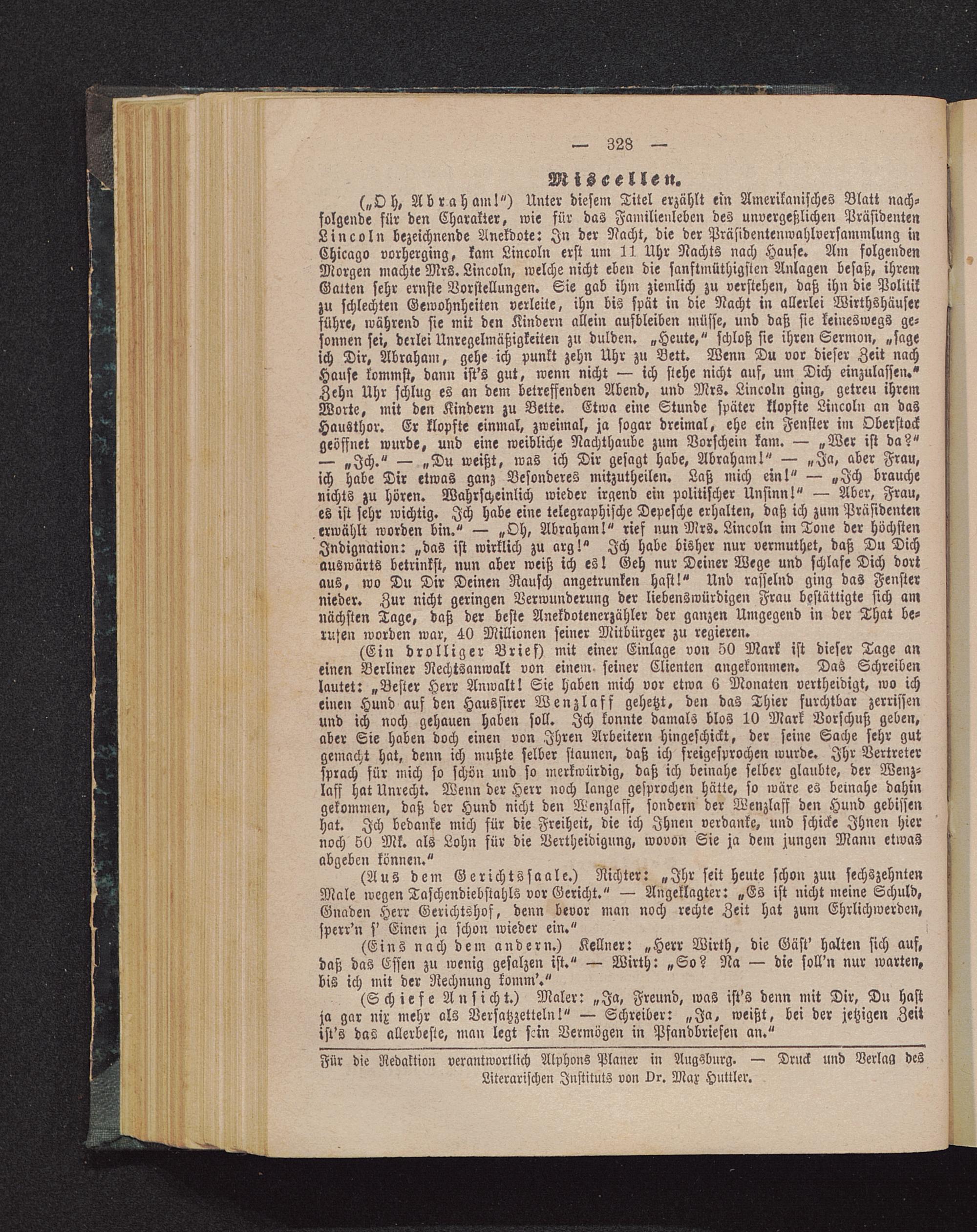 Für die Redaktion verantwortlich Alphons Planer in Augsburg . — Druck und Verlag desLiterarischen Instituts von Dr. Max Huttler.