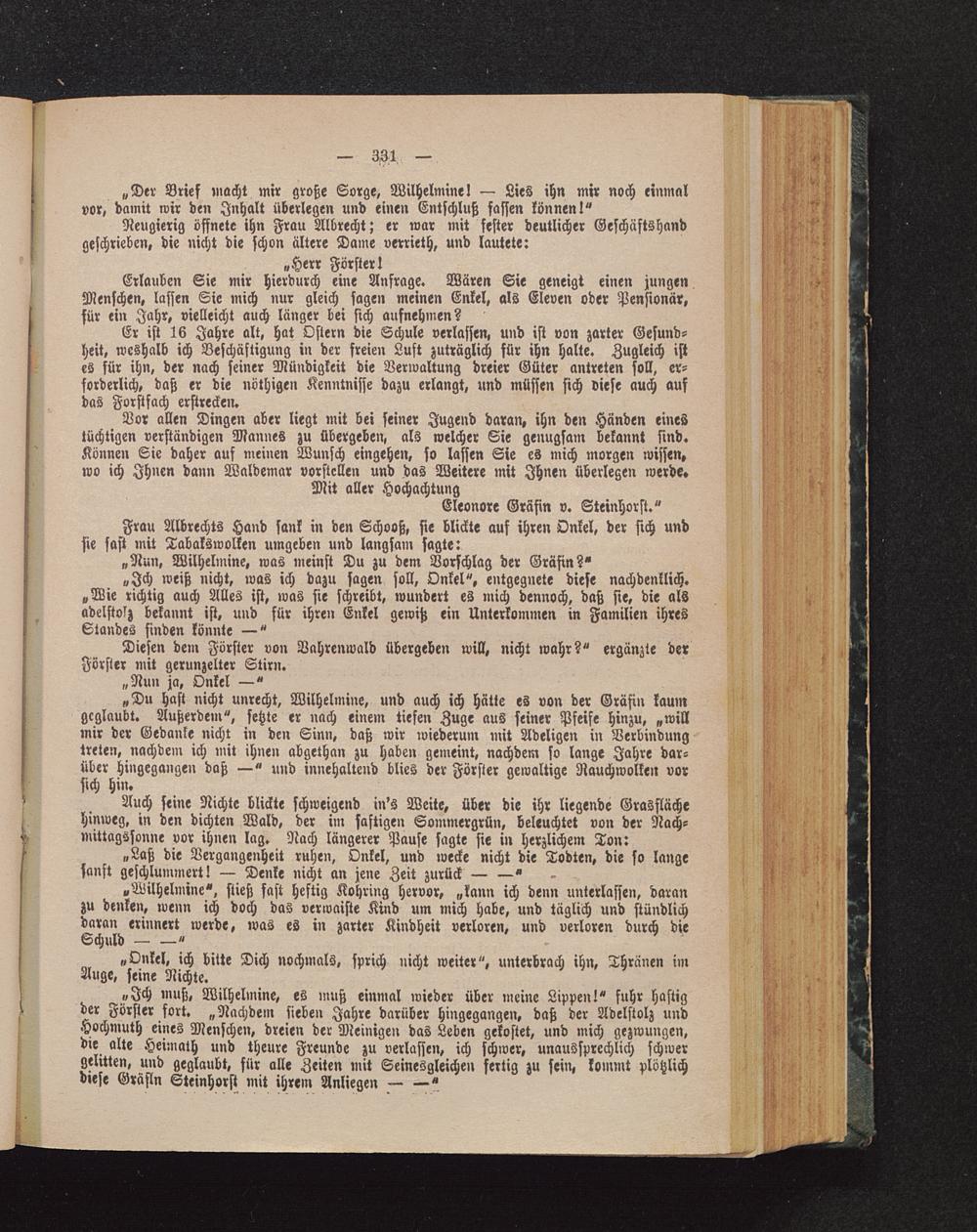 „Onkel, ich bitte Dich nochmals, sprich nicht weiter", unterbrach ihn, Thränen imAuge, feine Nichte.