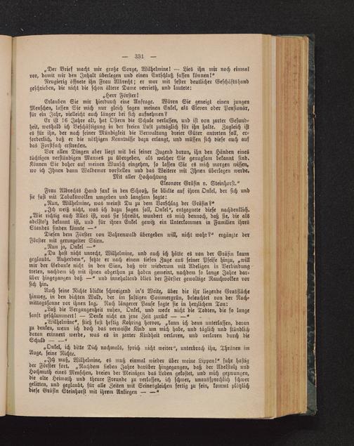 Auch seine Nichte blickte schweigend in's Weite, über die ihr liegende Grasflächehinweg, in den dichten Wald, der im saftigen Sommergrün, beleuchtet von der Nach-mittagssonne vor ihnen lag. Nach längerer Pause sagte sie in herzlichem Ton: