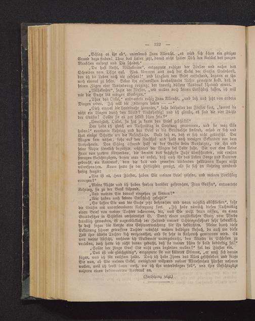„So lassen Sie uns die Sache jetzt besprechen und wenn möglich abschließen", fuhrdie Gräfin mit unverkennbarer Aufregung fort. „Ich habe nämlich diesen Nachmittageinen Brief von meiner Tochter bekommen, dir, was Sie wohl kaum wissen, an einenGutsbesitzer in Schlesien verheirathet ist. Durch einen unglücklichen Sturz vom Pferdskränklich geworden, ist augenblicklich der Zustand meines Schwiegersohnes sehr bedenklich,so daß sogar die Aerzte eine Gehirnerweichung für ihn befürchten. Meine durch dieseErklärung schwer getroffene Tochter wünscht meinen baldigen Besuch, da auch um dieseZeit ihre älteste Tochter sich verheirathet, und sie sehr in Anspruch genommen wird. Eswar meine Absicht, nachdem ich Waldemar untergebracht, den Winter in Schlesien zuverleben, doch hatte ich nicht daran gedacht, daß sie meiner schon so bald bedürftig sei!"