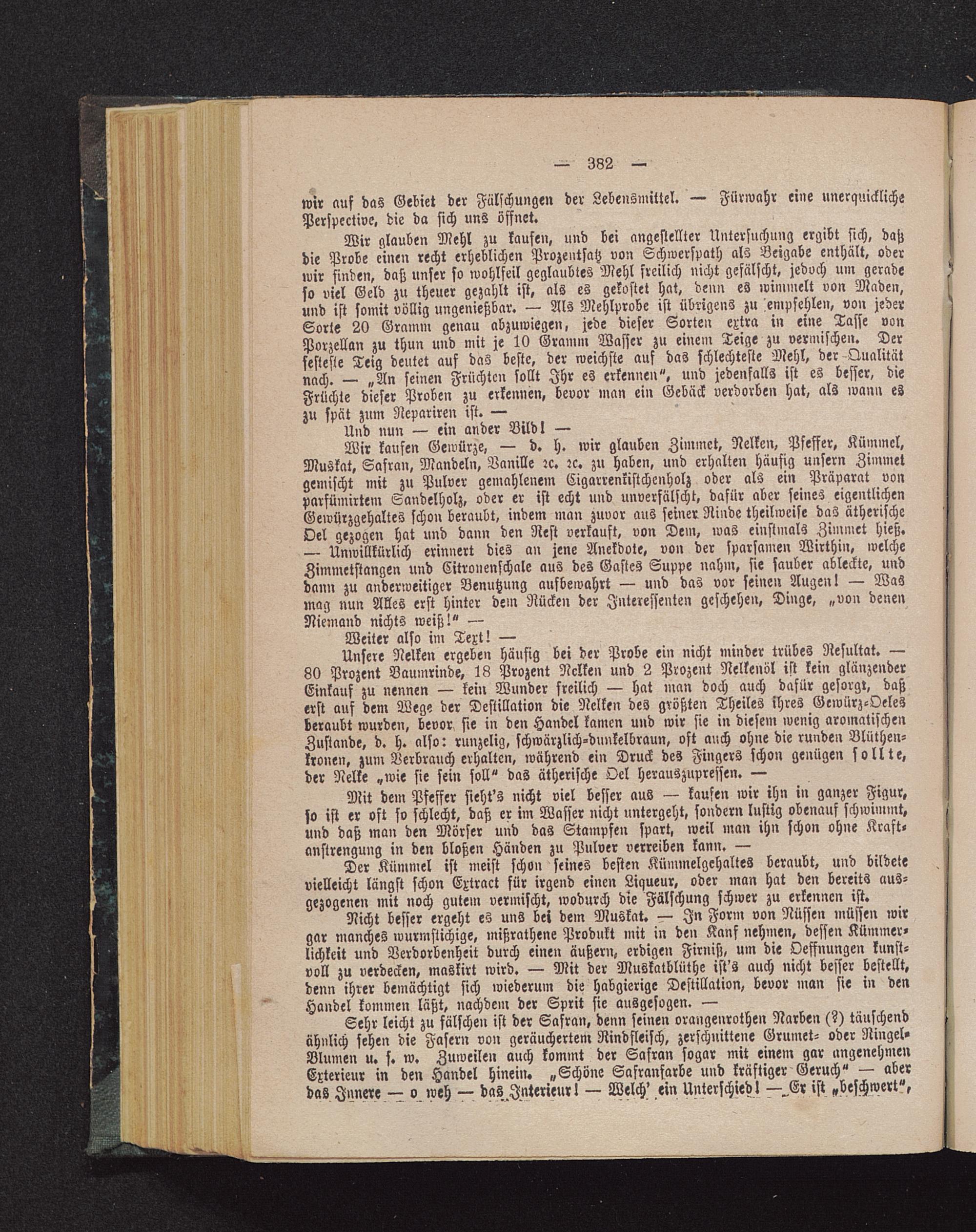 Wir kaufen Gewürze, — d. h. wir glauben Zimmet, Nelken, Pfeffer, Kümmel,Muskat, Safran, Mandeln, Vanille rc. rc. zu haben, und erhalten häufig unsern Zimmetgemischt mit zu Pulver gemahlenem Cigarrenkistchenholz oder als ein Präparat vonparfümirtem Sandelholz, oder er ist echt und unverfälscht, dafür aber seines eigentlichenGewürzgehaltes schon beraubt, indem man zuvor aus seiner Rinde theilweise das ätherischeOel gezogen hat und dann den Nest verkauft, von Dem, was einstmals Zimmet hieß.— Unwillkürlich erinnert dies an jene Anekdote, von der sparsamen Wirthin, welcheZimmetstangen und Zitronenschale aus des Gastes Suppe nahm, sie sauber ableckte, unddann zu anderweitiger Benutzung aufbewahrt — und das vor seinen Augen! — Wasmag nun Alles erst hinter dein Rücken der Interessenten geschehen, Dinge, „von denenNiemand nichts weiß!" —