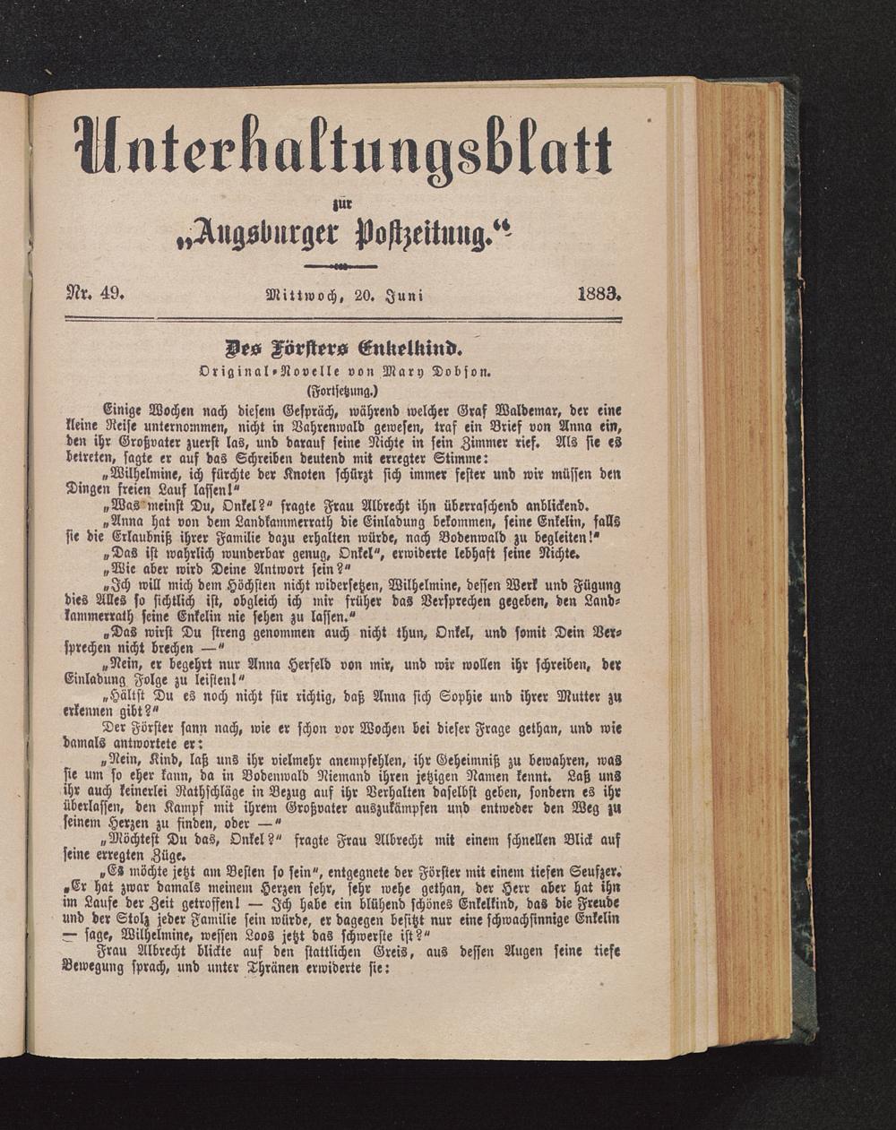 «Anna hat von dem Landkammerrath die Einladung bekommen, seine Enkelin, fallssie die Erlaubniß ihrer Familie dazu erhalten würde, nach Bodenwald zu begleiten!"