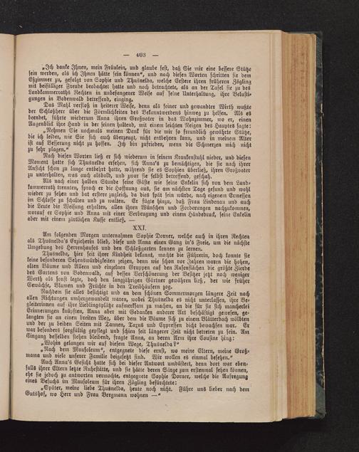 Auch Anna's Gesicht hatte sich bei dieser Antwort umdüstert, denn dort war eben-falls ihrer Eltern letzte Ruhestätte, und sie hätte deren Särge zum erstenmal sehen können,ehe sie jedoch zu antworten vermochte, entgegnete Sophie Dörner, welche die Aufregungeines Besuchs im Mausoleum für ihren Zögling befürchtete: