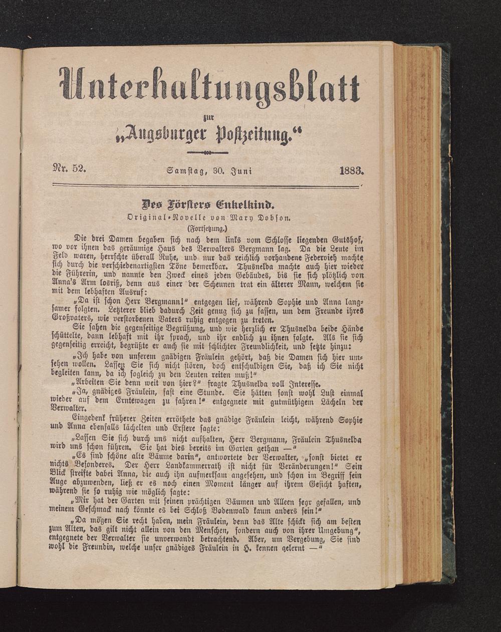 „Da mö'gen Sie recht haben, mein Fräulein, denn das Alte schickt sich am bestenzum Alten, das gilt nicht allein von den Menschen, sondern auch von ihrer Umgebung",entgegnete der Vermalter sie unverwandt betrachtend« Aber, um Vergebung, Sie sindwohl die Freundin, welche unser gnädiges Fräulein in H. kennen gelernt —"