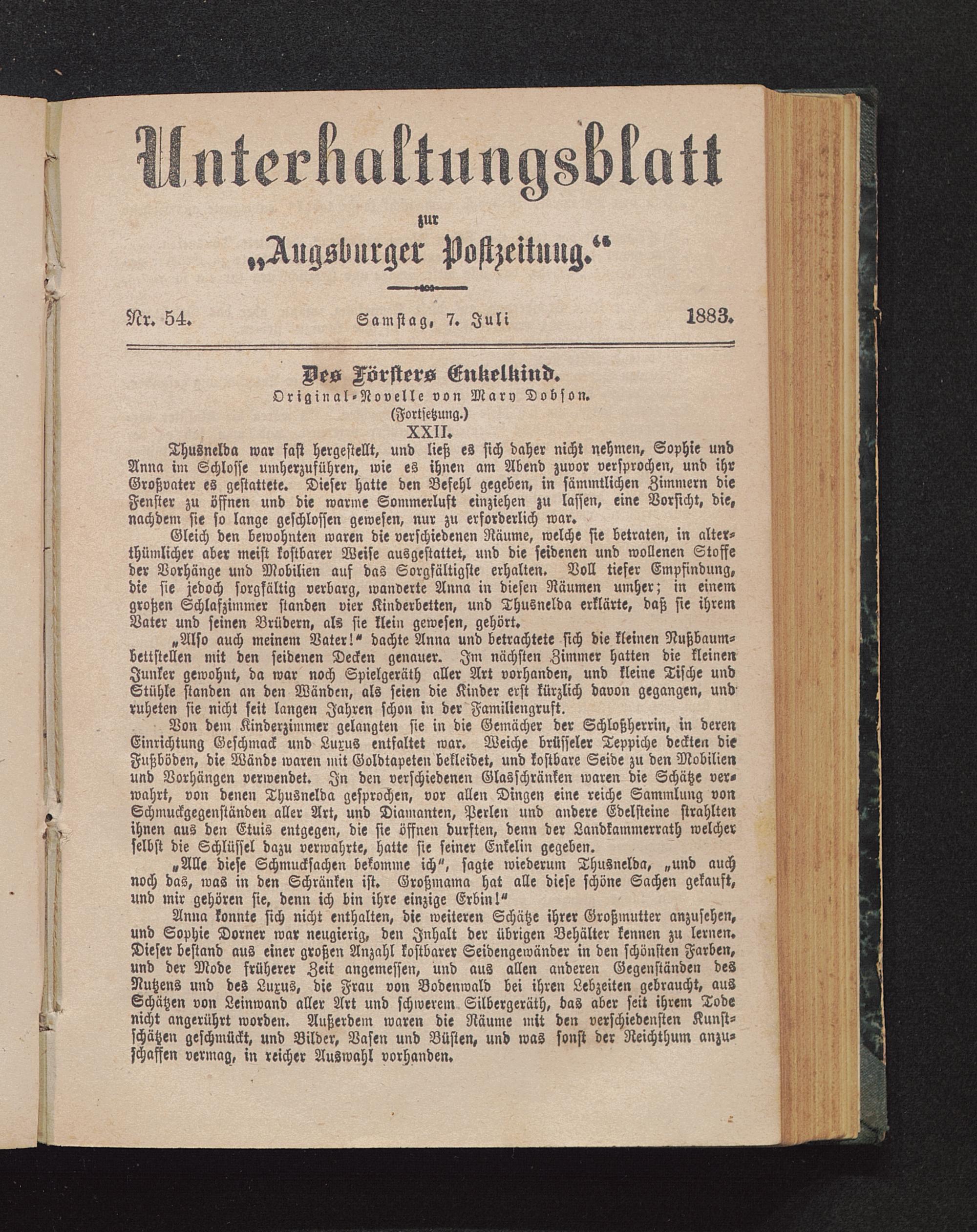 „Also auch meinem Vater!* dachte Anna und betrachtete sich die kleinen Nußbaum-bettstellen mit den seidenen Decken genauer. Im nächsten Zimmer hatten die kleinenJunker gewohnt, da war noch Spielgeräth aller Art vorhanden, und kleine Tische undStühle standen an den Wänden, als seien die Kinder erst kürzlich davon gegangen, undrührten sie nicht seit langen Jahren schon in der Familiengruft.