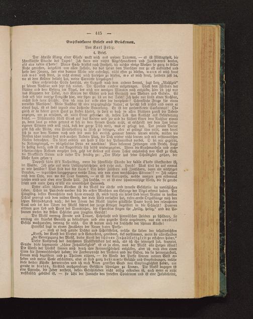 Unter allen schönen Künsten ist die Musik die älteste und treueste Gefährtin im menschlichenLeben. Schon im Paradiese werden sich die ersten Menschen am Gesänge der Vogel erfreut haben. DerSäugling, dessen Bewußtsein noch kaum erwacht ist, wird durch ein leises Lied feiner Mutter in sanftenSchlaf gewiegt und dem müden Greise, der diese Welt verlassen hat, rufen ernste Orgelklänge noch denletzten Abschiedsgruß nach; bei den Tönen der Musik hüpfen glückliche Paare durch den erleuchtetenSaal und bei den Tönen der Musik stürmt der junge Krieger begeistert in die Schlacht! Hymnenertönen zum Lob und Preis des Unendlichen, die Cherubim singen ihr „heilig, heilig," und die Po-saunen wecken die stillen Schläser zum jüngsten Gericht!