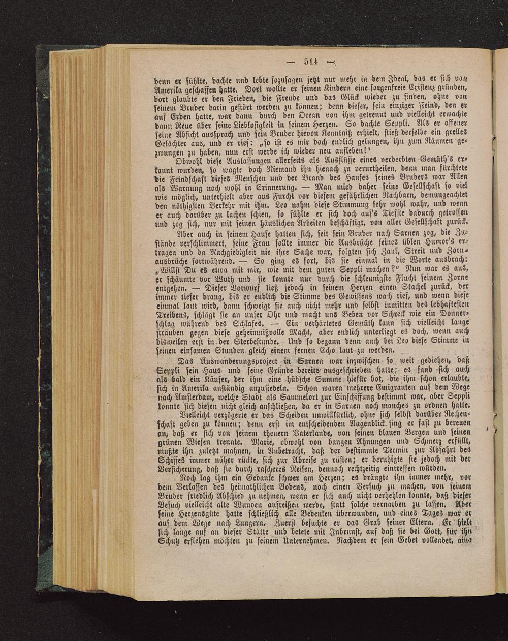 Das Auswanderungsproject in Sarnen war inzwischen so weit gediehen, baßSeppli sei» Haus und seine Gründe bereits ausgeschrieben hatte; es fand-sich auchals bald ein Käufer, der ihm eine hübsche Summe hiefür bot, die ihm schon erlaubte»sich in Amerika anständig anzusiedeln. Schon waren mehrere Emigranten auf dem Wegenach Amsterdam , welche Stadt als Sammelort zur Einschiffung bestimmt war» aber Sepplikonnte sich diesen nicht gleich anschließen, da er in Sarnen noch manches zu ordnen hatte.