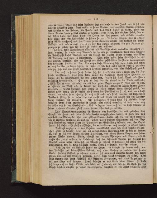 Vielleicht verzögerte er das Scheiden unwillkürlich, ohne sich selbst darüber Rechen-schaft geben zu können; denn erst im entscheidenden Augenblick, sing er fast zu bereuenan> daß er sich von seinem theuern Vaterland«, von seinen blauen Bergen und seinengrünen Wiesen trennte. Marie, obwohl von bangen Ahnungen und Schinerz erfüllt,mußte ihn zuletzt mahnen, in Anbetracht, daß der bestimmte Termin zur Abfahrt desSchiffes immer näher rückte, sich zur Abreise zu rüsten; er beruhigte sie jedoch mit derVersicherung, daß sie durch rascheres Reisen, dennoch rechtzeitig eintreffen würden.