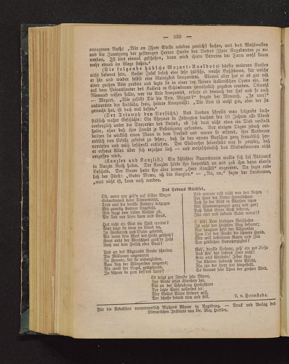 Für die Redaktion verantwortlich Alphons Planer in Augsburg . — Druck und Verlag desLiterarischen Instituts von Dr. Max. Huttler.