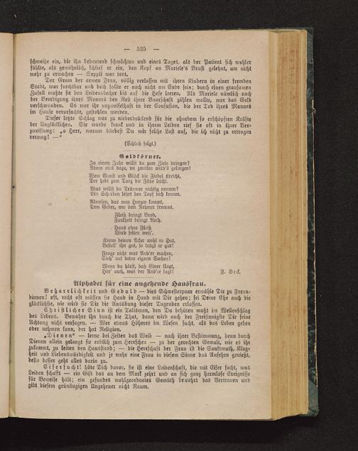 Beharrlichkeit und Geduld — dies Schwesterpaar erwähle Dir zu Freun-dinnen! oft, recht oft müssen sie Hand in Hand mit Dir gehen; sei Deine Ehe auch dieglücklichste, nie wird sie Dir die Ausübung dieser Tugenden erlassen.