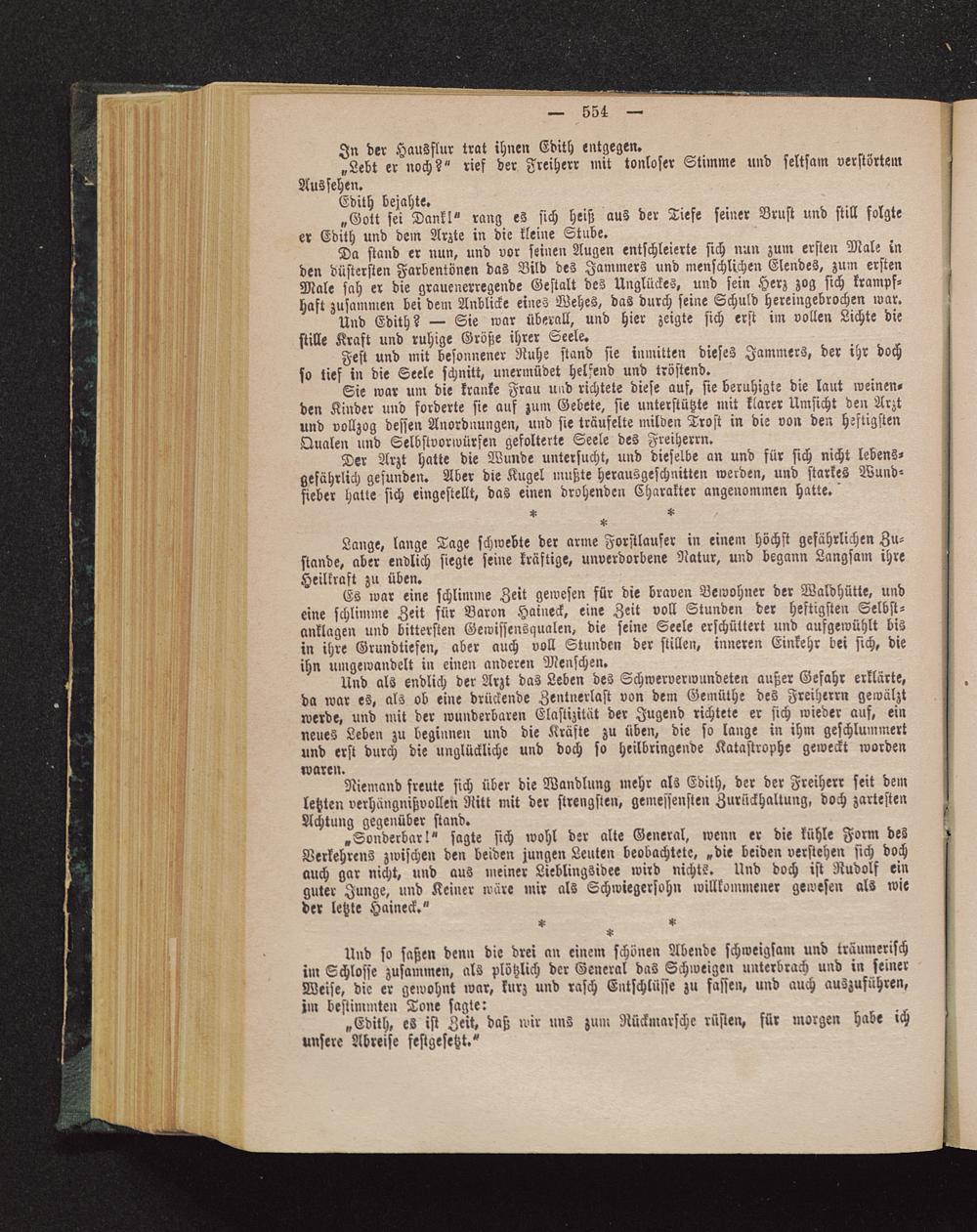 Und so saßen denn die drei an einem schönen Abende schweigsam und träumerischim Schlosse zusammen, als plötzlich der General das Schweigen unterbrach und in seinerWeise, die er gewohnt war, kurz und rasch Entschlüsse zu fassen, und auch auszuführen,jm bestimmten Tone sagte: