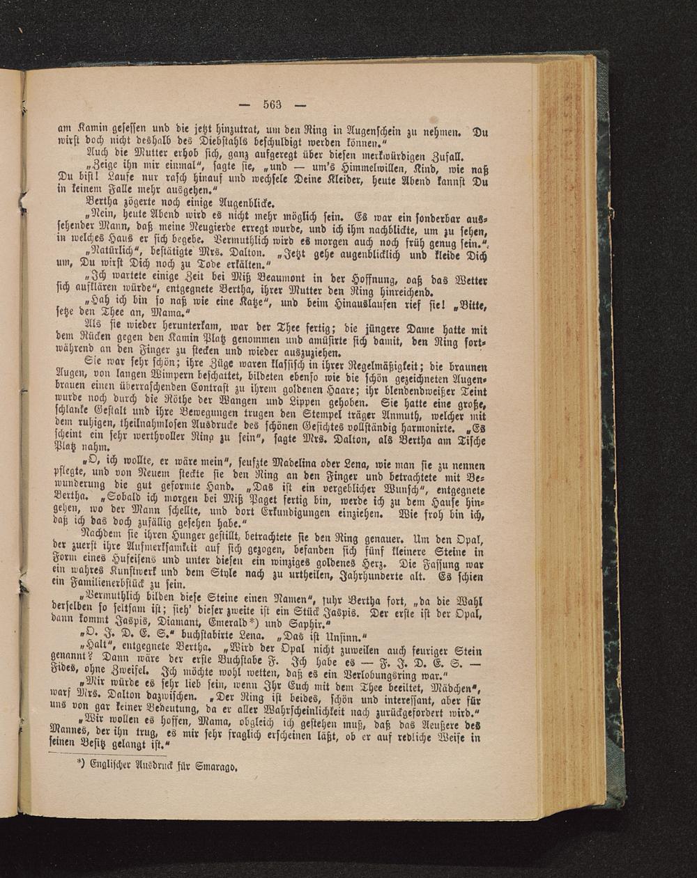 „Vermuthlich bilden diese Steine einen Namen", fuhr Bertha fort, „da die Wahlderselben so seltsam ist; sieh' dieser zweite ist ein Stück Jaspis. Der erste ist der Opal,dann kommt Jaspis, Diamant, Emerald*) und Saphir. "