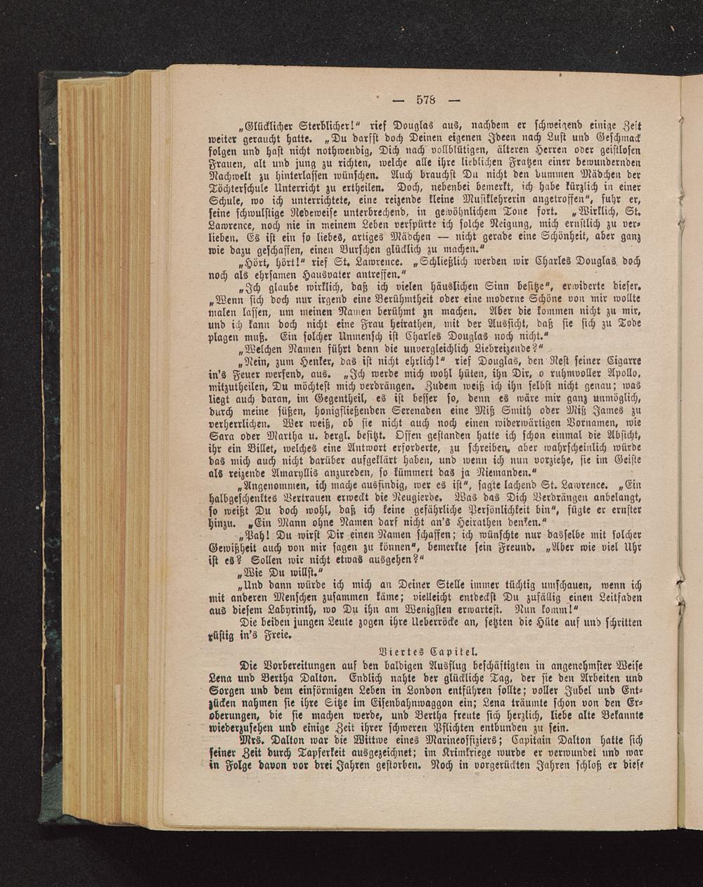 Mrs. Dalton war die Wittwe eines Marineoffiziers; Capitain Dalton hatte sichseiner Zeit durch Tapferkeit ausgezeichnet; im Krimkriege wurde er verwundet und warin Folge davon vor drei Jahren gestorben. Noch in vorgerückten Jahren schloß er diese