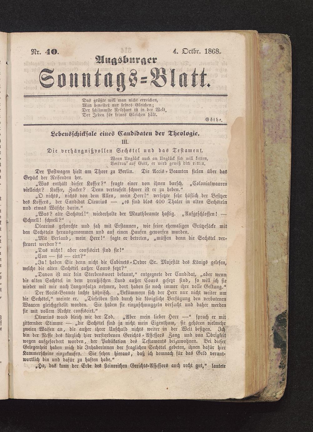 „Davon ist mir kein Sterbenswort bekannt," cntgcgncte der Candidat, „aber wenndie alten Sechstel in dem preußischen Land außer Cours gesetzt sind, so will ich siewieder mit mir nach Langcnsalza nehmen, dort haben sie noch immer ihre volle Geltung."