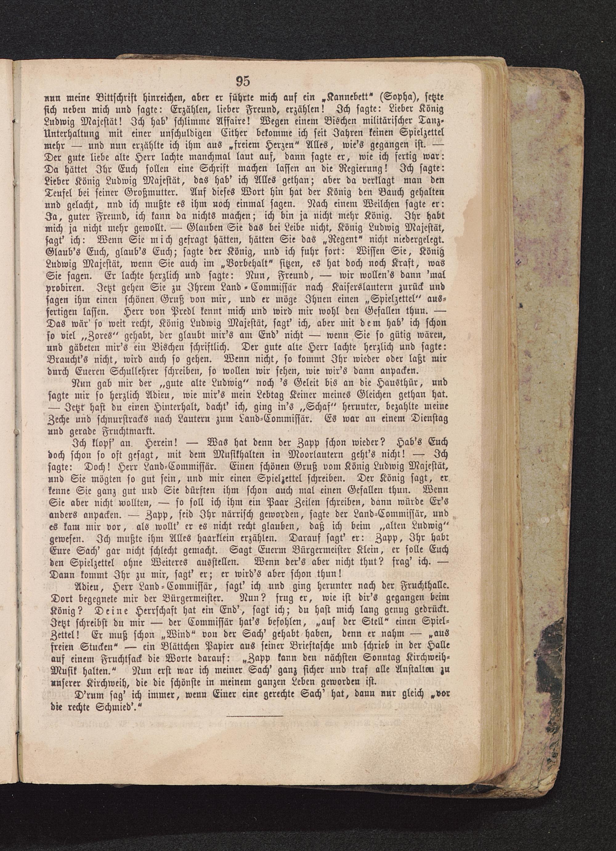 Nun gab mir der „gute alte Ludwig" noch 's Geleit bis au die Hausthür, undsagte mir so herzlich Adieu, wie mir's mein Lcbtag Keiner meines Gleichen gethan hat.— Jetzt hast du einen Hinterhalt, dacht' ich, ging in's „Schaf" herunter, bezahlte meineZeche und schnurstracks nach Lauteru zum Land-Commistär. Es war an einem Dienstagund gerade Frachtmarkt.