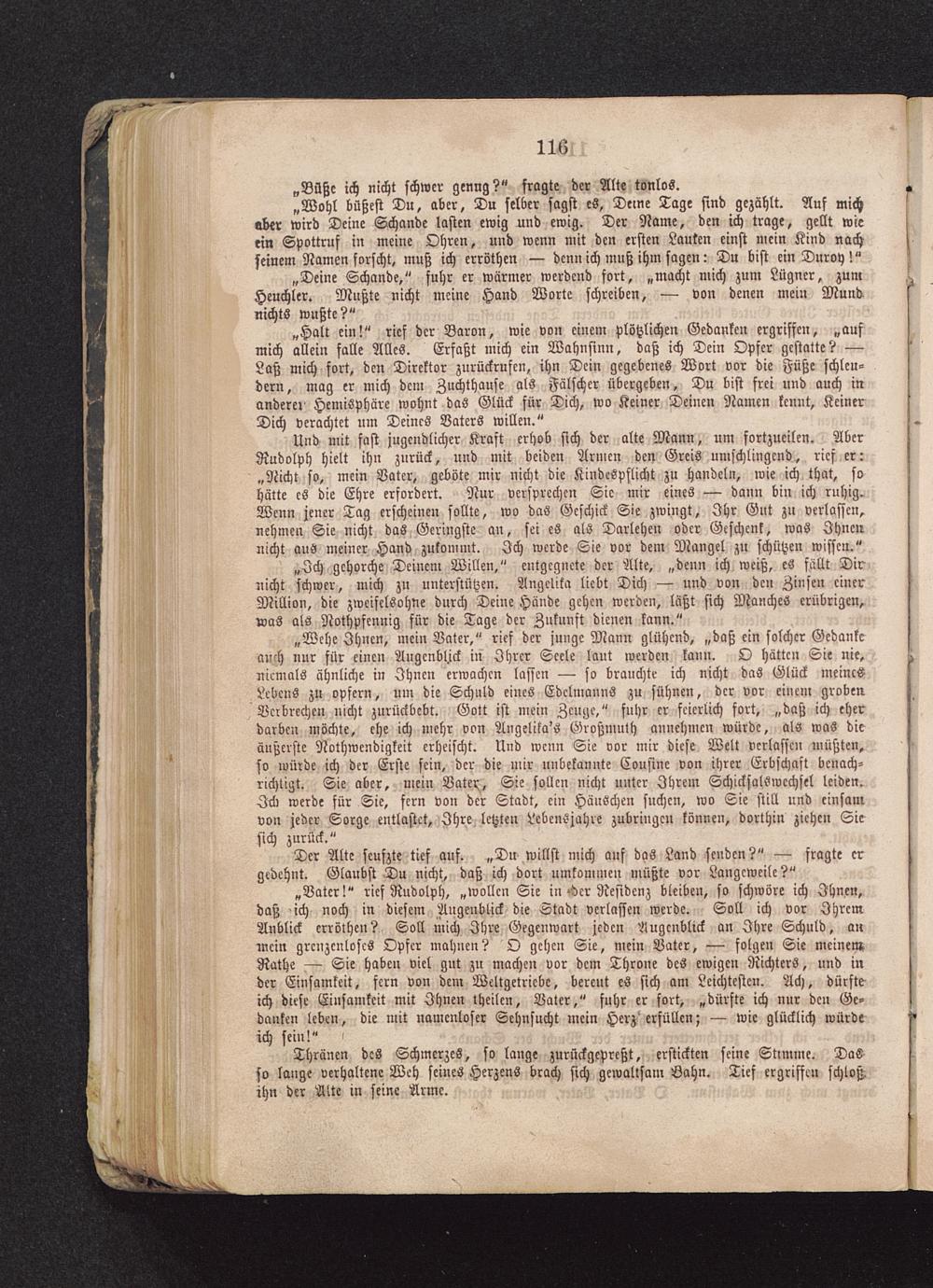 Thränen des Schmerzes, so lange zurnckgepreßt, erstickten seine Stimme. Dasso lange verhaltene Weh seines Herzens brach sich gewaltsam Lahn . Tief ergriffen schloß,ihn der Alte in seine Arme.