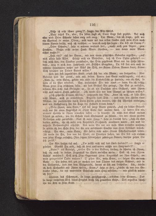 „Vater!" rief Rudolph, „wollen Sie in-der Residenz bleiben, so schwöre ich Ihnen,daß Ach noch in diesem Augenblick die Stadt verlassen werde. Soll ich vor IhremAnblick crrölhen? Soll mich Ihre Gegenwart jeden Augenblick an Ihre Schuld, anmein grenzenloses Opfer mahnen? O gehen Sie, mein Vater, — folgen Sie mcinem-Rathe — Sie haben viel gut zu machen vor dem Throne des ewigen Richters, und inder Einsamkeit, fern von dem Weltgetricbc, bereut es sich am Leichtesten. Ach, dürfteich diese Einsamkeit mit Ihnen theilen, Vater," fuhr er fort, „dürfte ich nur den Ge-danken leben, die mit namenloser Sehnsucht mein Herz erfüllen; — wie glücklich würdeich sein!"
