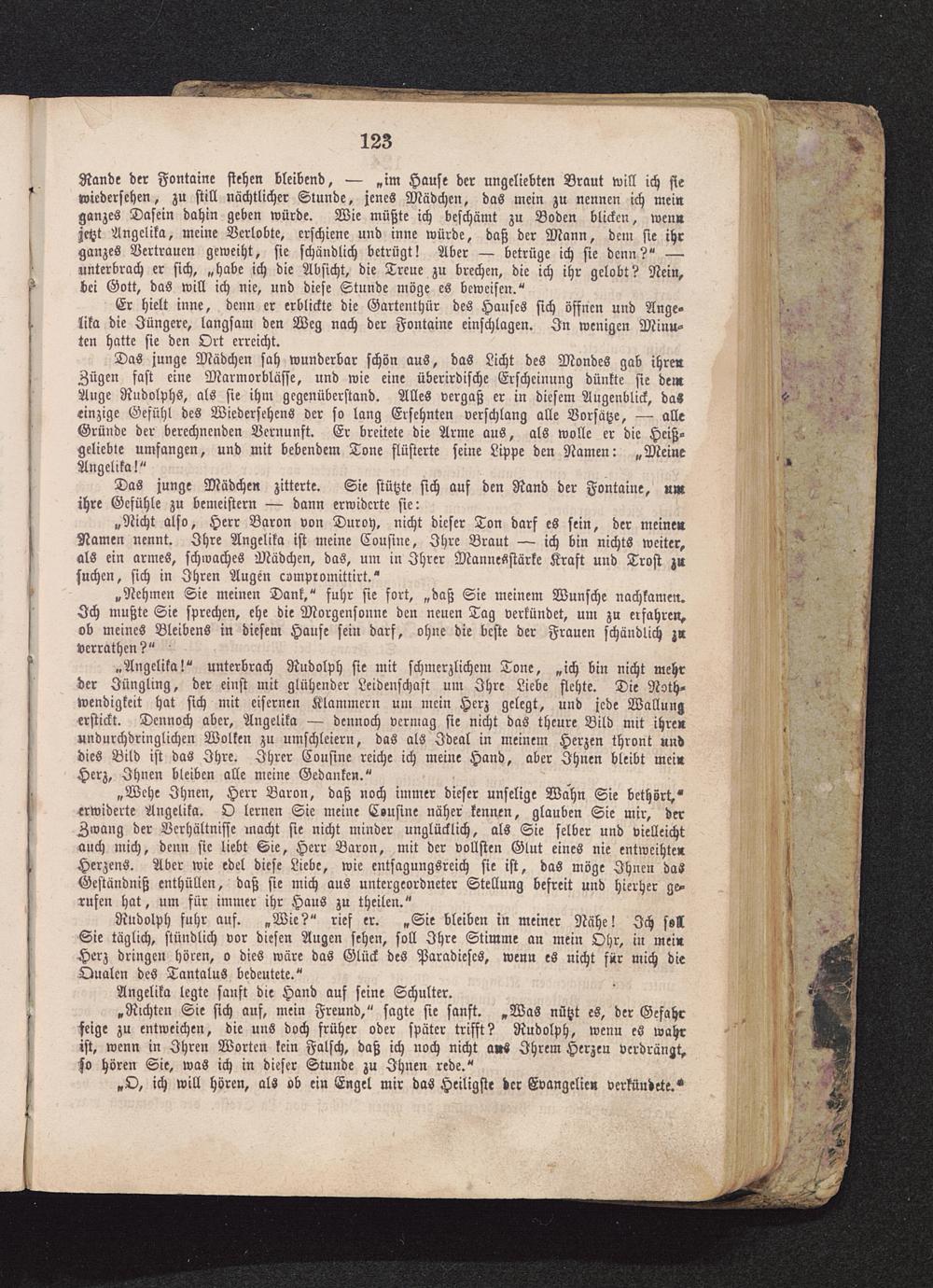 „Nicht also, Herr Baron von Duroy, nicht dieser Ton darf es sein, der meine«Namen nennt. Ihre Angelika ist meine Cousine, Ihre Braut — ich bin nichts weiter,als ein armes, schwaches Mädchen, das, um in Ihrer Mannesstärke Kraft und Trost zusuchen, sich in Ihren Augen compromittirt."