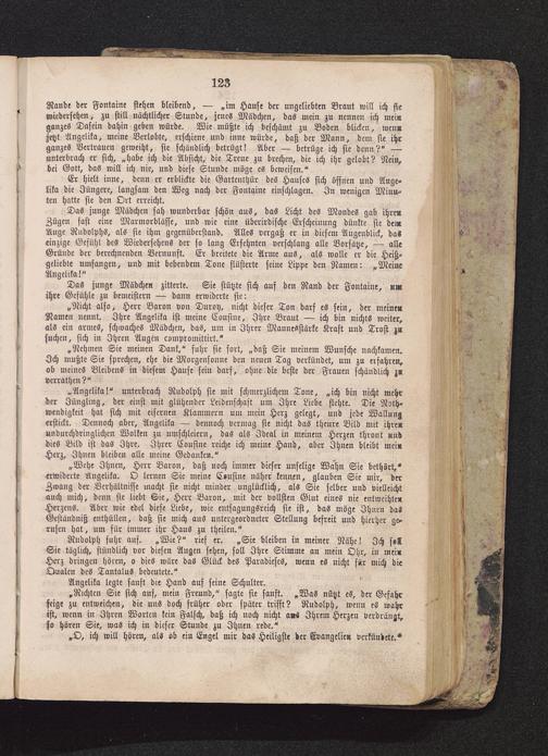 „Wehe Ihnen, Herr Baron, daß noch immer dieser unselige Wahn Sie bethört,"erwiderte Angelika. O lernen Sie meine Cousine näher kennen, glauben Sie mir, derZwang der Verhältnisse macht sie nicht minder unglücklich, als Sie selber und vielleichtauch mich, denn sie liebt Sie, Herr Baron, mit der vollsten Glut eines nie entweihte«Herzens. Aber wie edel diese Liebe, wie cntsagungsreich sie ist, das möge Ihnen dasGeständniß enthüllen, daß sie mich aus untergeordneter Stellung befreit und hierher ge-rufen hat, um für immer ihr Haus zu theilen."