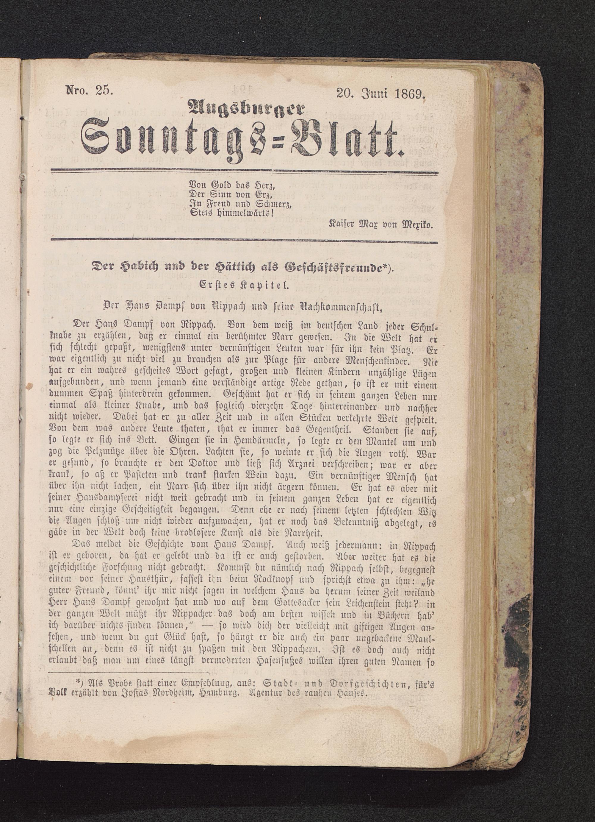 Als Probe statt einer Empfehlung, aus: Stadt- und Dorfgeschichten, für'sVolk erzählt von Josias Nordheim, Hamburg . Agentur des rauhen Hauses.