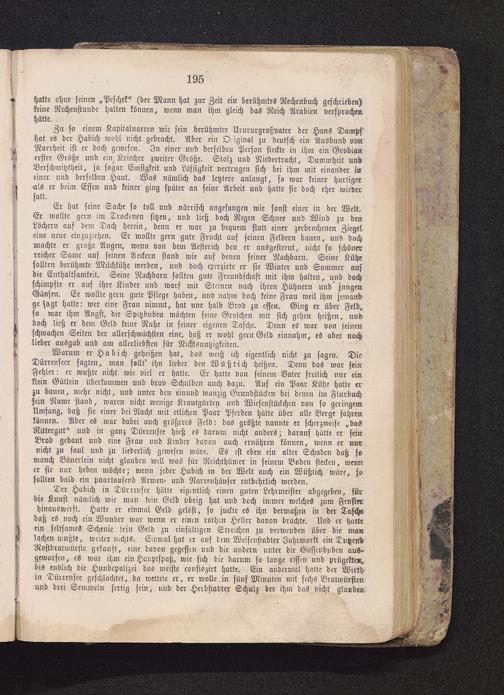 sollten berühmte Milchkühe werden, und doch excrzirte er sie Winter und Sommer aufdie Enthaltsamkeit. Seine Nachbarn sollten gute Freundschaft mit ihm halten, und dochschimpfte er auf ihre Kinder und warf mit Steinen nach ihren Hühnern und jungenGänsen. Er wollte gern gute Pflege haben, und nahm doch keine Frau weil ihm jemandgesagt hatte: wer eine Frau nimmt, hat nnr halb Brod zu essen. Ging er über Feld,