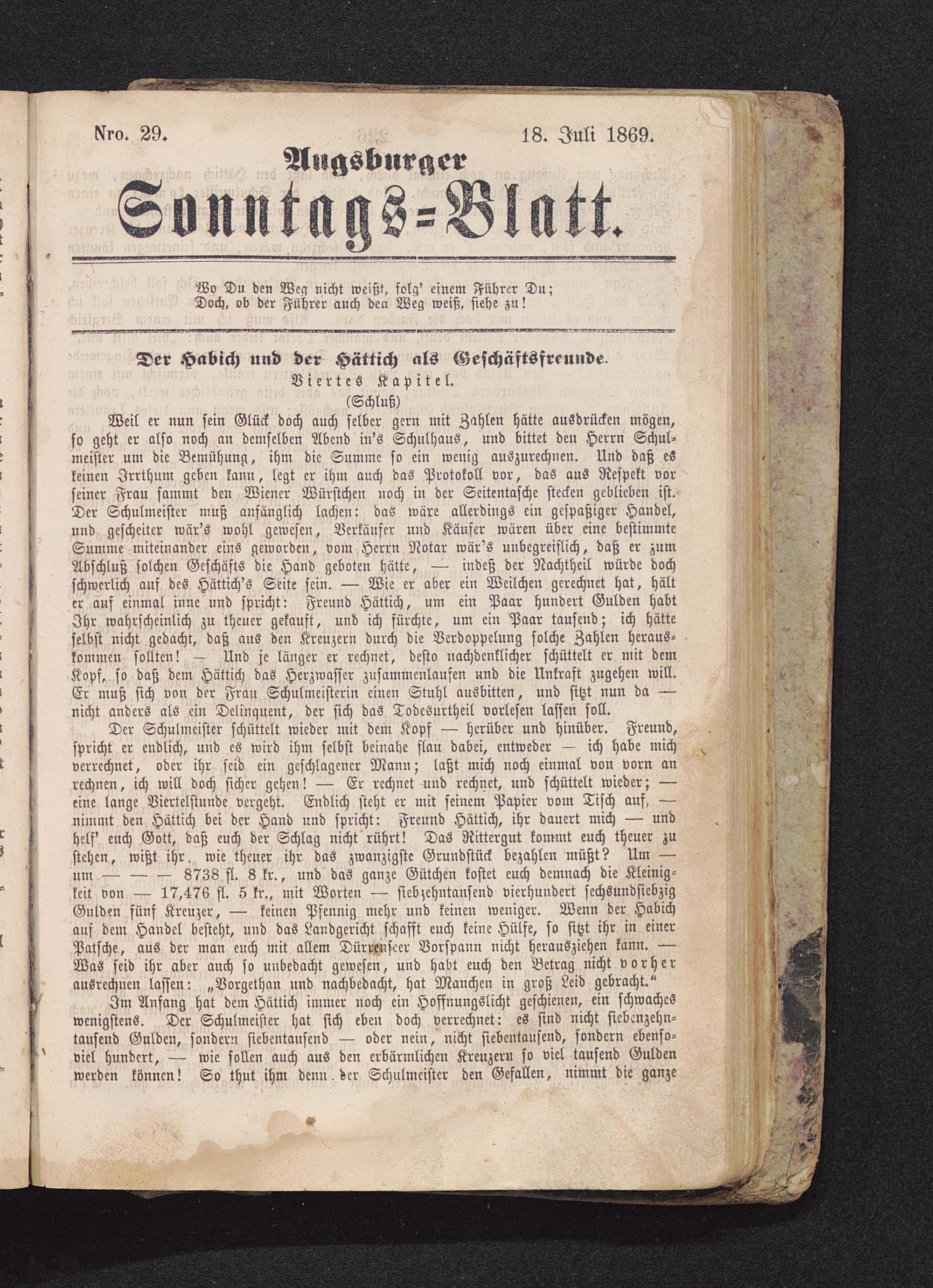 Im Anfang hat dem Hättich immer noch ein Hoffnungslicht geschienen, ein schwacheswenigstens. Der Schulmeister hat sich eben doch verrechnet: es sind nicht sicbenzehn-tausend Gulden, sondern siebentausend — oder nein, nicht siebentausend, sondern ebenso-viel hundert, — wie sollen auch aus den erbärmlichen Kreuzern so viel tausend Guldenwerden können! So thut ihm denn. der Schulmeister den Gefallen, nimmt die ganze