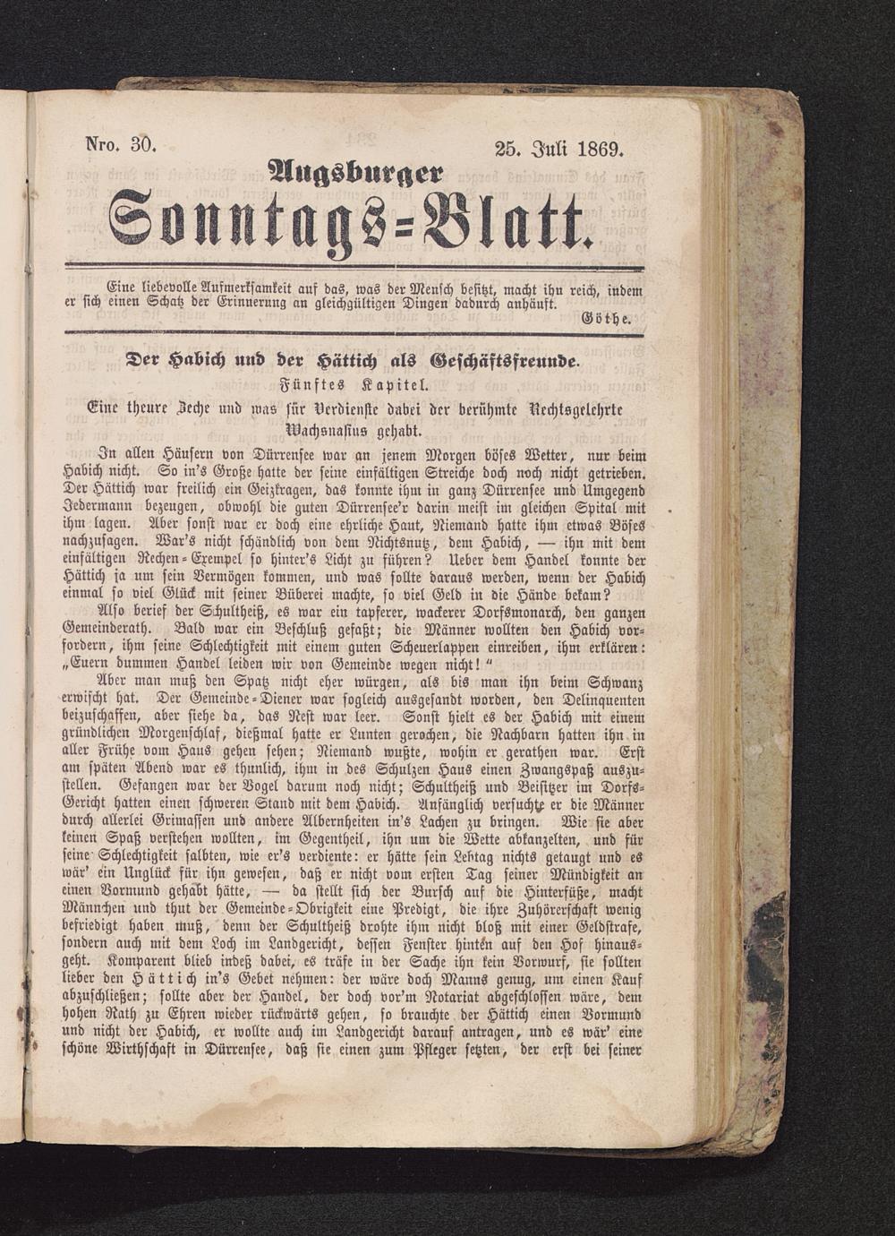 Also berief der Schultheiß, es war ein tapferer, wackerer Dorfsmonarch, den ganzenGemeinderath. Bald war ein Beschluß gefaßt; die Männer wollten den Habich vor-sortiern, ihm seine Schlechtigkeit mit einem guten Scheuerlappen einreiben, ihm erklären:„Euern dummen Handel leiden wir von Gemeinde wegen nicht! "