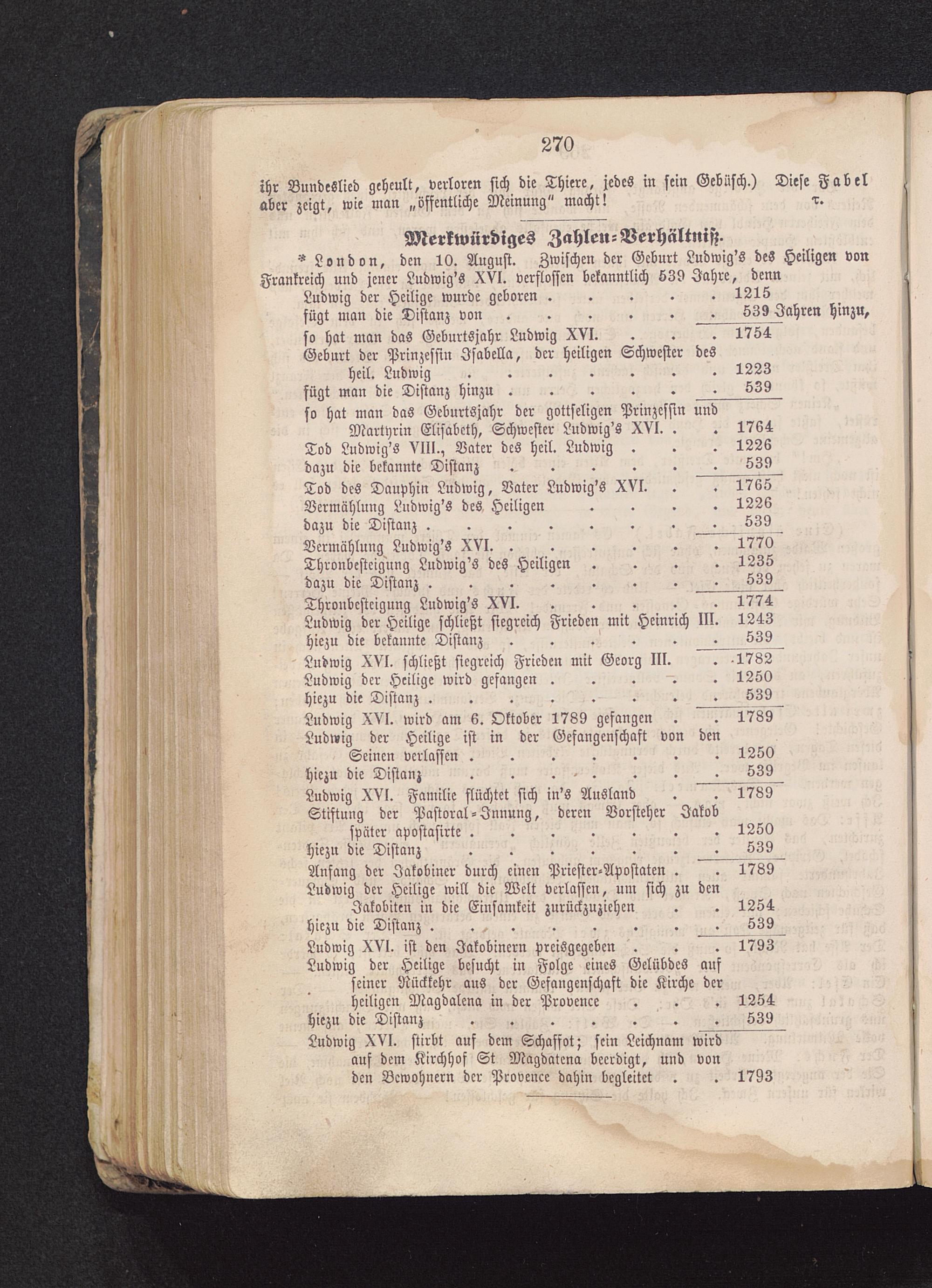 * London , den 10. August. Zwischen der Geburt Ludwig's des Heiligen vonFrankreich und jener Ludwig's XVI. verflossen bekanntlich 539 Jahre, denn