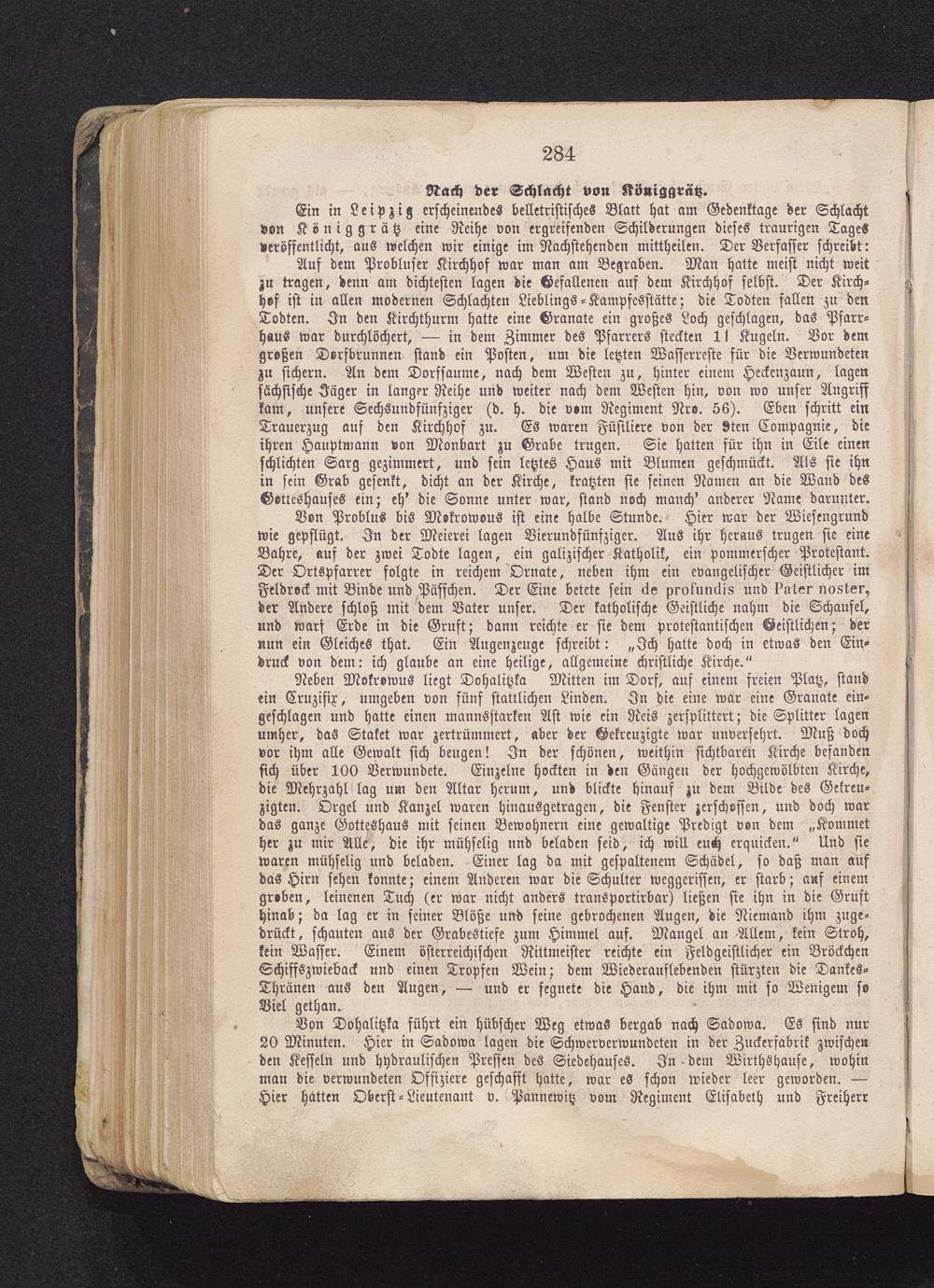 Ein in Leipzig erscheinendes belletristisches Blakt hat am Gedenktage der Schlachtvon Königgrätz eine Reihe von ergreifenden Schilderungen dieses traurigen Tagesveröffentlicht, aus welchen wir einige im Nachstehenden mittheilen. Der Verfasser schreibt: