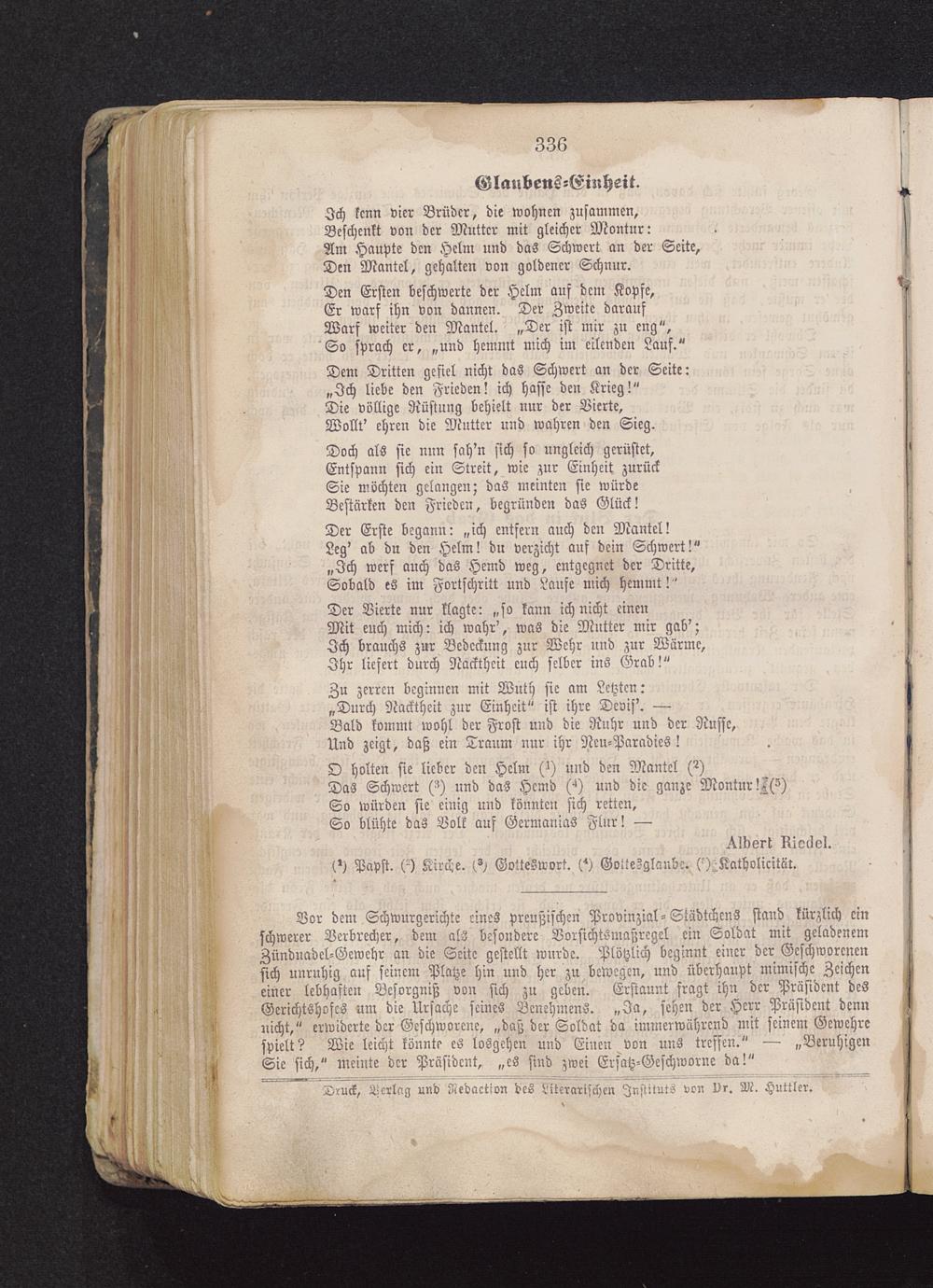 Druch Verlag und Redaction des Bterarischcn Instituts von Dr. M. Huttlcr.