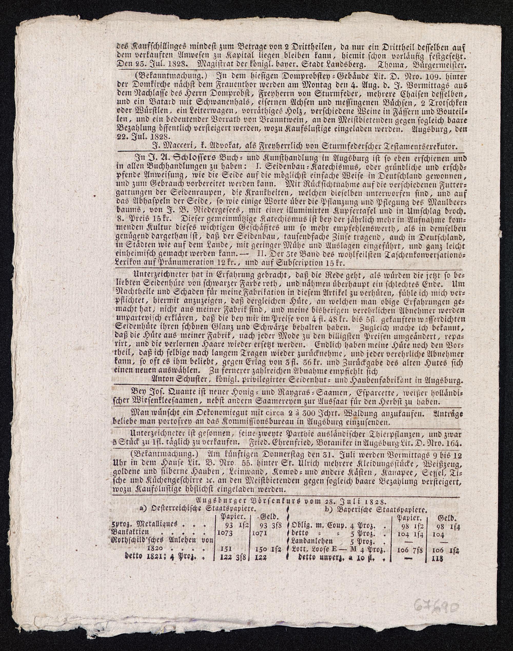 Augskurzer Börsenkurs vom 28 . Juli 1828 .