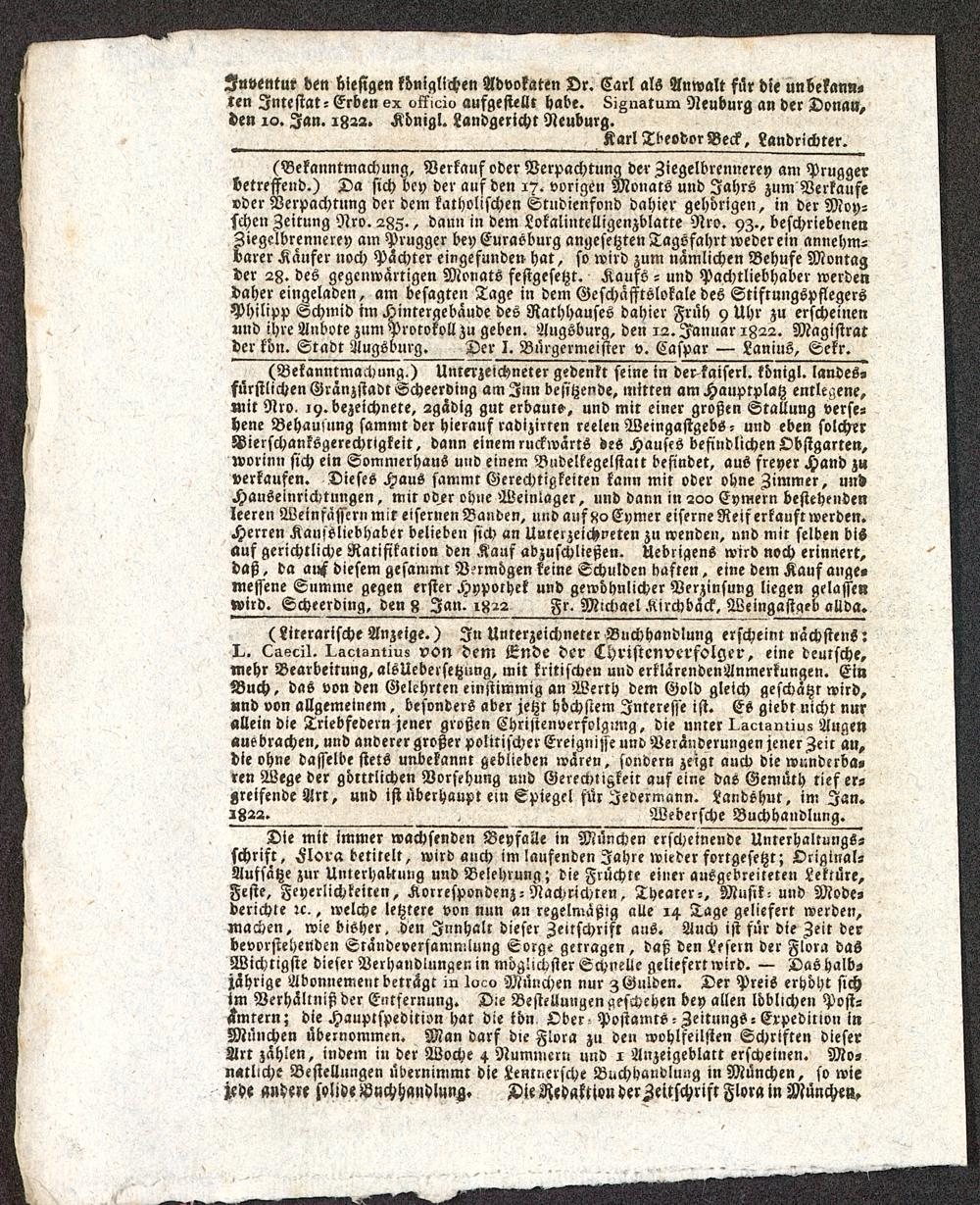 Augsburgische Ordinari Postzeitung. 1811-1822