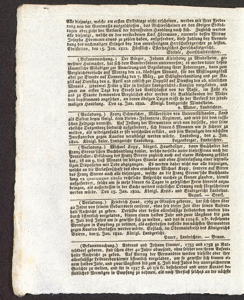 Augsburgische Ordinari Postzeitung. 1811-1822