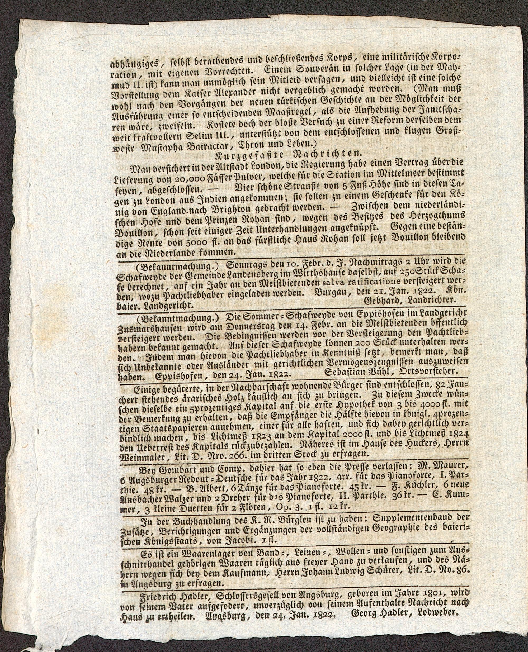 Augsburgische Ordinari Postzeitung. 1811-1822
