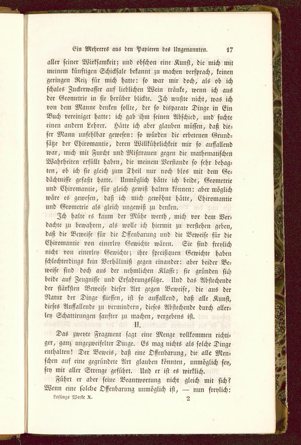 Das zwcvte Fragment sagt eine Menge vollkommen richti-ger, ganz lingczwcifcltcr Dinge. ES mag nichts als solche Dingeenthalten! Der Beweis, daß eine Offenbarung, die alle Men-schen auf eine gegründete Art glauben könnte», unmöglich sey,sey mit aller Strenge geführt. Und er ist es wirklich.