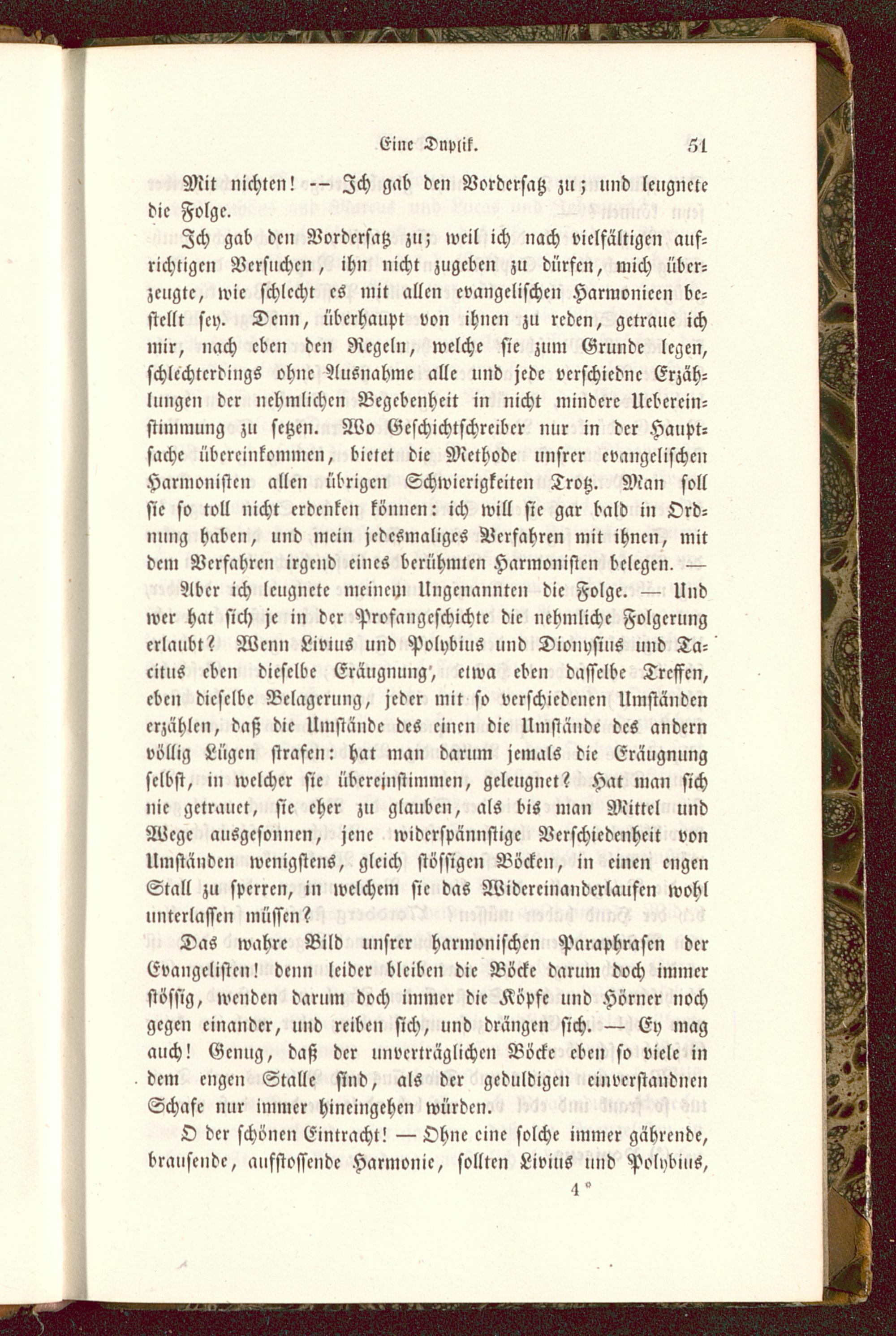 Aber ich leugnete meinem Ungenannten die Folge. — Undwer hat sich je in der Prosangcschichte die nehmliche Folgerungerlaubt? Wenn Livius und Polybius und Dionysius und Ta-citus eben dieselbe Eräugnung, clwa eben dasselbe Treffen,eben dieselbe Belagerung, jeder mit so verschiedenen Umständenerzählen, daß die Umstände des einen die Umstände des andernvöllig Lügen strafen: hat man darum jemals die Eräugnungselbst, in welcher sie übereinstimmen, geleugnet? Hat man sichnie getrauet, sie eher zu glauben, als bis man Mittel undWege ausgcsonncn, jene widcrspännstige Verschiedenheit vonUmständen wenigstens, gleich stössigcn Böcken, in einen engenStall zu sperren, in welchem sie das Widercinanderlaufcn wohlunterlassen müssen?