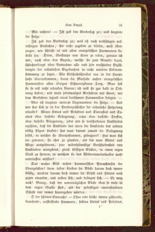 Das wahre Bild unsrer harmonischen Paraphrasen derEvangelisten! denn leider bleiben die Böcke darum doch immerstössig, wenden darum doch immer die Köpfe und Hörner nochgegen einander, und reiben sich, und drängen sich. — Ey magauch! Genug, daß der unverträglichen Böcke eben so viele indem engen Stalle sind, als der geduldigen cinvcrstandncnSchafe nur immer hineingehen würden.