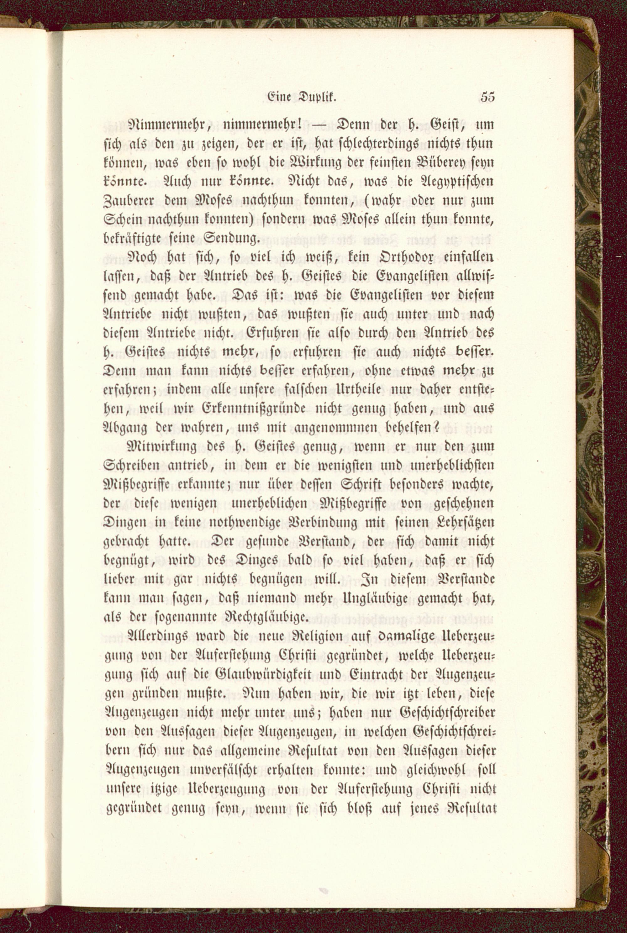 Allerdings ward die neue Religion auf damalige Ueberzeu-gung von der Auferstehung Christi gegründet, welche Ueberzeu-gung sich auf die Glaubwürdigkeit und Eintracht der Augenzeu-ge» gründen mußte. Nun haben wir, die wir itzt leben, dieseAugenzeugen nicht mehr unter uns; haben nur Geschichtschreibervon den Aussagen dieser Augenzeugen, in welchen Geschichtschrei-bern sich nur das allgemeine Resultat von den Aussagen dieserAugenzeugen unverfälscht erhalten konnte: und gleichwohl sottunsere itzigc Ueberzeugung von der Auferstehung Christi nichtgegründet genug seyn, wenn sie sich blos; auf jenes Resultat