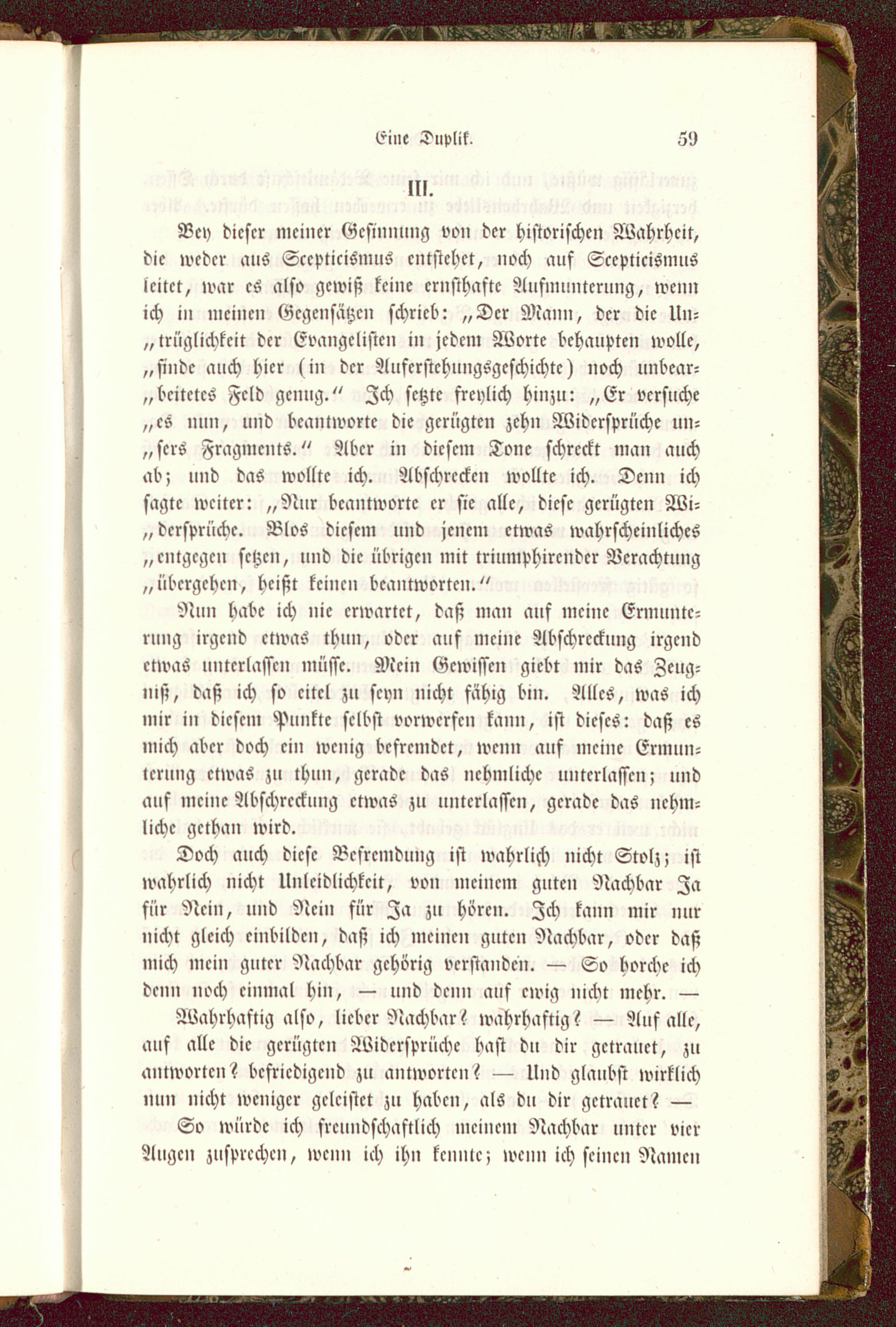 Doch anch diese Besrcmdung ist wahrlich nicht Stolz; istwahrlich nicht Unlcidlichkcit, von meinem gnten Nachbar Zafür Nein, und Nein für Za zu hören. Ich kann mir nurnicht gleich einbilden, daß ich meinen guten Nachbar, oder daßmich mein guter Nachbar gehörig verstanden. — So horche ichdenn »och einmal hin, — und denn auf ewig nicht mehr. —