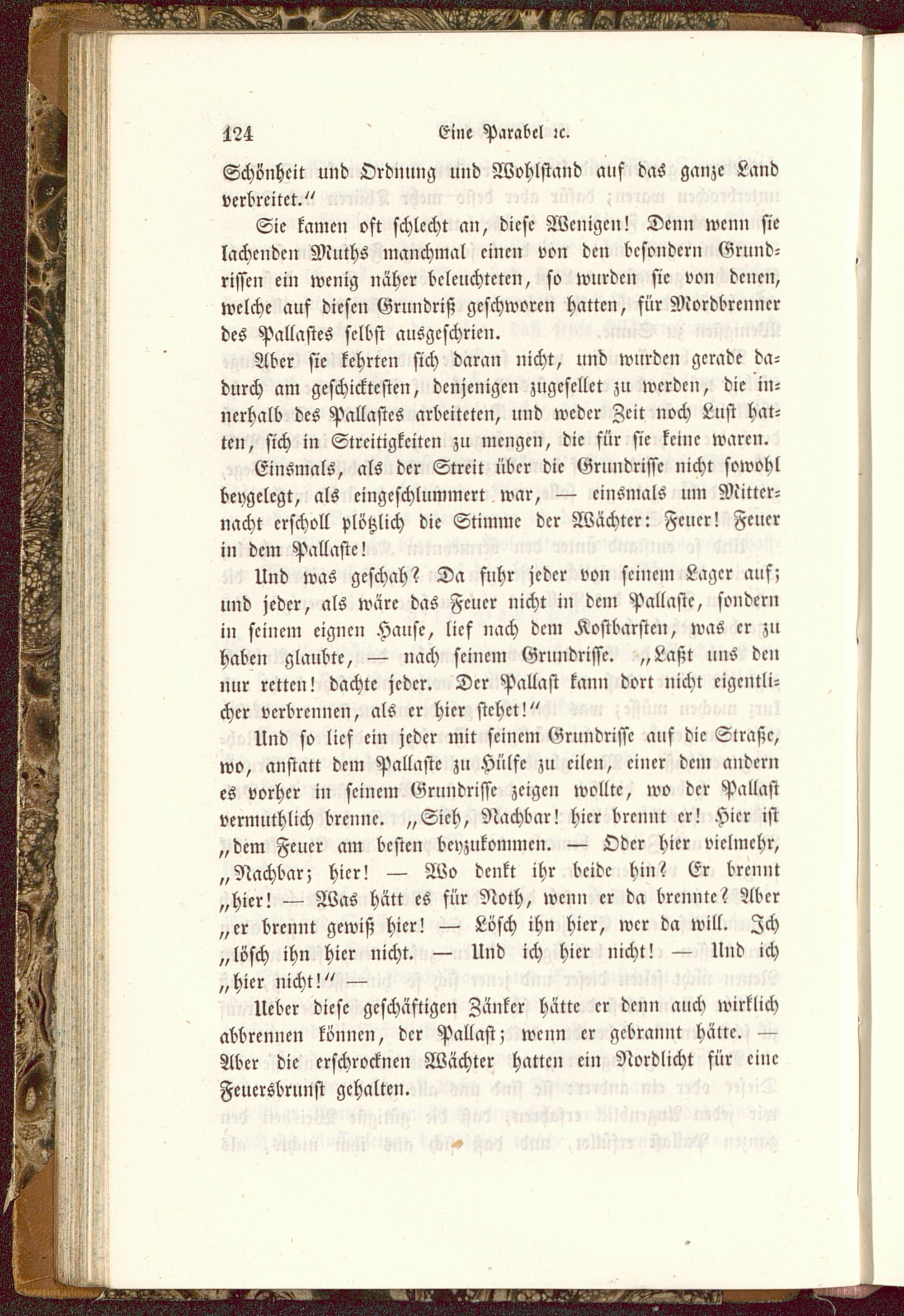 Einsmals, als der Streit über die Grundrisse nicht sowohlbeygelegt, als eingeschlummert war, — einsmals um Mitter-nacht erscholl plötzlich die Stimme der Wächter: Feuer! Feuerin dem Pallaste!