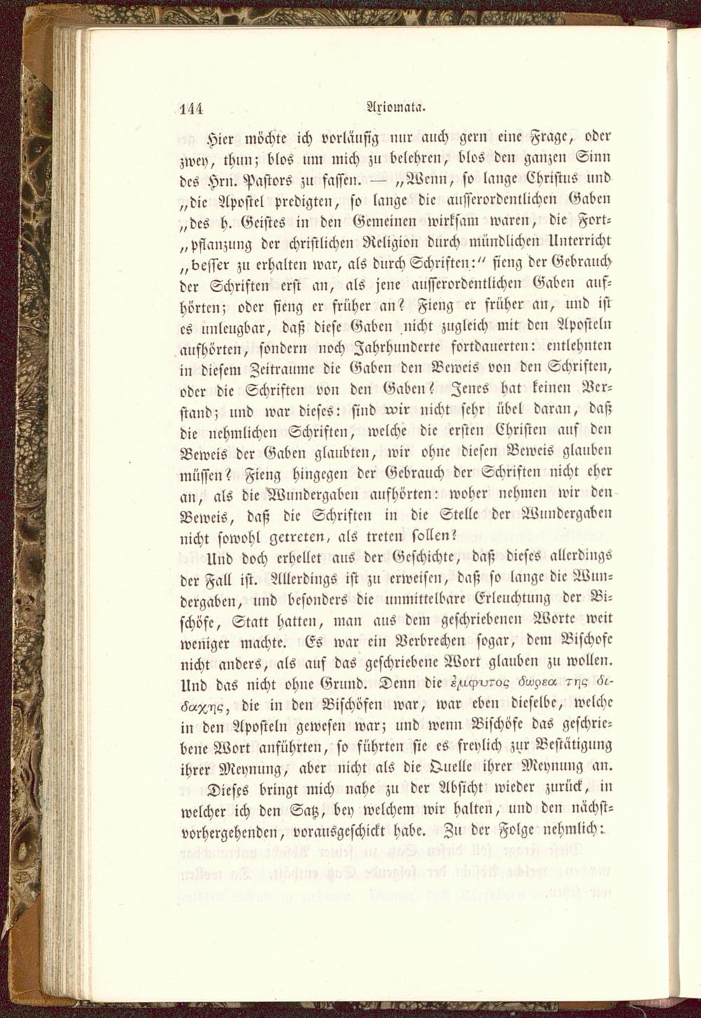Und doch crbcllct ans dcr Gcschichtc, daß dicscs allcrdingsdcr Fall ist. Allerdings ist zu erwciscn, daß so langc dic Wun-dcrgaben, und besonders dic unmittelbare Erleuchtung dcr Bi-schöfe, Statt hatten, man aus dem geschriebenen Worte weitweniger machte. Es war ein Verbrechen sogar, dem Bischöfenicht anders, als auf das geschriebene Wort glaubcn zu wollcn.Und das nicht ohne Grund. Denn die ^l.cp^?o? -5it>?x« <5c-t5«x,7z<?, die in den Bischöfen war, war eben dieselbe, wclcbcin den Aposteln gewesen war; und wenn Bischöfe das geschrie-bene Wort anführten, so fübrtcu sie es frcvlich zur Bestätigungihrer Mcmning, aber nicht als die Quelle ihrer Meynung an.