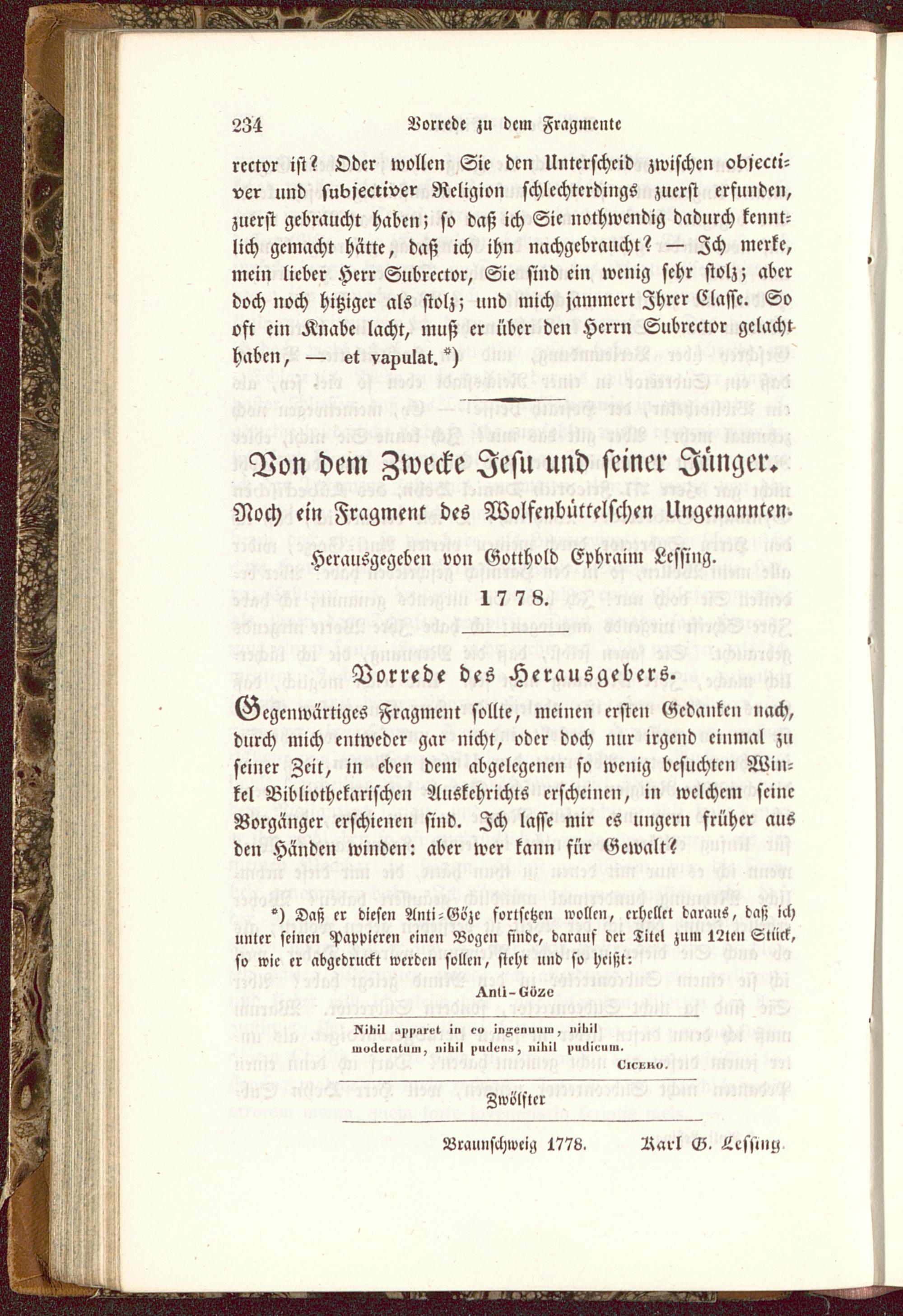 Noch ein Fragment des Wolfenbüttelschen Ungenannten.Hcrausgcgcbcn von Gotthold Ephraim Lcssing.17 7 8.