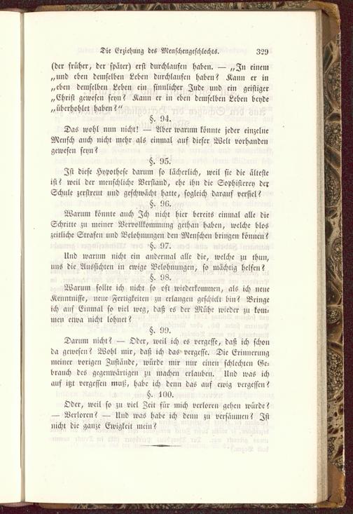 (dcr früher, dcr später) erst durchlaufen habe». — „Zu einem„und eben demselben Leben durchlaufen haben? Kann er in„eben demselben Leben ein sinnlicher Jude und ein geistiger„Christ gewesen seyn? Kann er in eben demselben Leben beyde„überhöhtet haben?"
