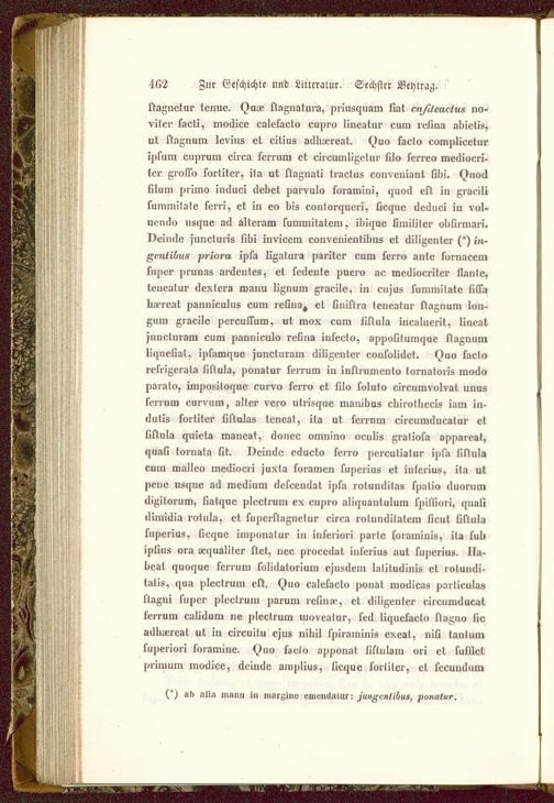 l'taFnelur lenue. t)uu? sl.iFnalui'.i, niius^uarn llat «?n/i/elie/«L no-vile»- taeti, moäiee ealesaclo eunio liueatui' cun> lelina i>I)ieti.>-,ut tl.ignum levius et ciiius aliliooreat. <)uo taelo comnlieelurin5unr euuiuni cii'ca 5erium et eiieumligelui- iilo seirec» medioeii-ter ^i-oll» koiliter, iia ut ttiiAnati tioctus conveuiunt llui. <)»olllilum niimo induci deliet uarvulo toramini, l^uocl ett in graeilisummilate serri, et in eo vis conicn^ueiü, llei^uv lletluei in vul-uenilo nsc^ue oll slleinra tummitstem, iliissuo Lniiliter olilii'Miui.I)e!n»Io junctuvis llvi invicem eonveuientilius et 6iI!AenterAeilii^it« ^it'o?'» ipta ligatuia nariter cuni 5eiio ante tuinlicenikunei' itt-un.15 aiäentes, et sedenle nucio meillocliter ji.inle,teuealnr clexterg manu lignum xiaeilv, in cujus summilate iilluIl-rreat nannieulus cum i'ellng, et lliiistrn teneatui- slagnum Ion-x»in giacilo nercussum. ut mox eum tltlula incaluerit, lineatjunelui-am eum n.iuniculo rellns inseclo, anuvlltumljue tla^nuniIi,mellat, insnw^ue juncturain tliligenlei' eoutolillet. k)uo kucluresi iizoi.il.'» llslula, nonatui' seirum in intliumento tornalor!« moilo^ai.ilo, ioinosilo^ue curvo terro et tllo toluio eireumvvlvat unussenum eurvum, aller veio utiissme manilius clniolllceis iam in-«lulis koitiler llstulas teneal, ila ut tei'i-nm eircumllucatur etllsliila ciuiela maiieat, <I<>nee omnino oenlis ^raliola gsinareat,<suali lcirniila llt. Deinclo eäucto sei-ro inieuliülui- i>>>'i> lil'lulaeuin m.illeo ine<I!c>eii juxta loiamen tunerius et inleuiu«, ila utneue us,iue .ill weiiium lleleeuilat insu rciluiulil.i» s>,!>ti» <Iui»iun«ligitoi'um, liatsjuv nlectrui» ex eumo aliijuantuluni smllioii, iiuall«limiliia roiulu, et sunei'swAiielul' eirca rolun<1itaten> sicut iil'iiilütxnerlus, lieljue imncnialur in inlei'lvi'i ni>r»o soiinninis, ila tuninlius oia Lesjualiler ttet, nee proeeilat inseiius aut sunerius. IIu-ueat t^uo^ue teiium Ivlilliitorlum ejuslleiu lutilullini» et loluinli-t.ilis, i^uil nleeti-ui» clt. <)uo caletact» >>on!>t moliicu» ninlieulasstsAni suner nleeliui» naium lelin»', et tiili^enlei' e.iieuniliueatteiium ealillum ne nleclium mc>vealui', kell ticjuetuetli slii^no liesilti-rreat ut in eireuitu ejus niinl siiii-inninis exeal, »ill tanluinsuneii«,! toi'gmine. <)uo k-ieio -innonat iiliulsin ori et kuMetniiiuum moiiiee, cieiullv ainnlius, llcc^ue korliler, et teeuiulnn»