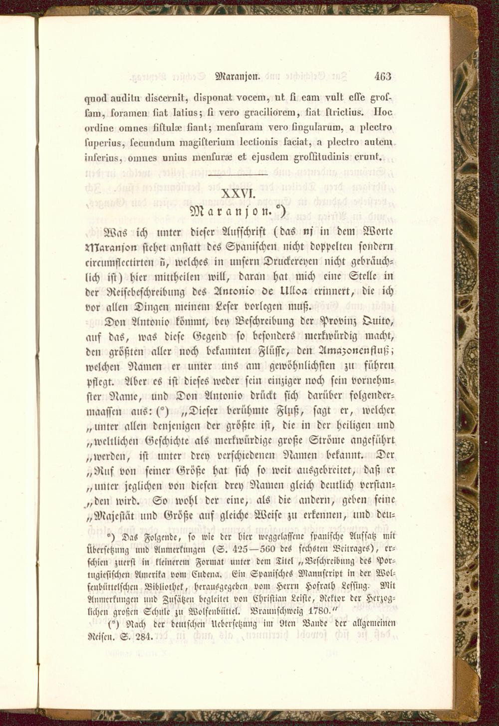 Was ich unter dieser Aufschrift (das ns in dcm Worte»Naranion siebet anstatt des Spanischen nicht doppelten sonderncircmnflcclirlcn ü, welches in unsern Druckereien nicht gebräuch-lich ist) bicr mittheilen will, daran hat mich eine Stelle inder Rciscbcschreibung des Antonio 0e Ullo« erinnert, die ichvor allen Dingen meinem Leser vorlegen muß.