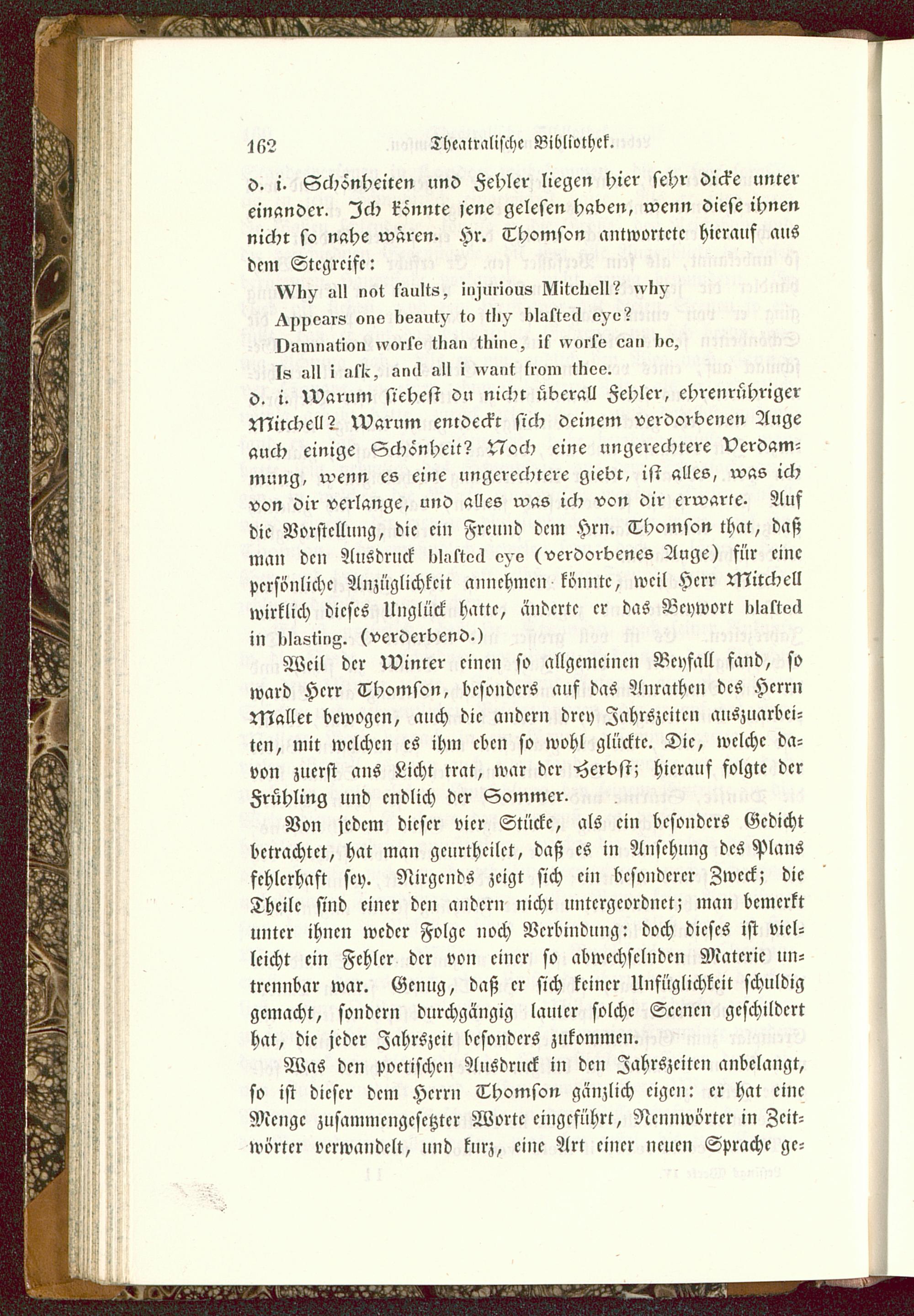 Is »II i :>slc, nnll all i ,va»t lrom tkoe.0. i. IVarum siehest du nicht überall Fehler, ehrenrührigerMitchcll? Marnm entdeckt sich deinem verdorbenen Augeauch einige Schönheit? N'och eine ungerechtere Verdam-mung, roenn es eine ungerechtere giebt, ist alles, roas ichvon dir verlange, und alles roas ich von dir crroarte- Aufdie Vorstellung, die ein Freund dem Hrn. Thomson that, daßman den Ausdruck lil-iktocl (verdorbenes Auge) für einepersönliche Anzüglichkeit annehmen könnte, weil Herr XNitchcllwirklich dieses Unglück hatte, änderte er das Beywort nlattc-äin dlastinF. (verderbend.)