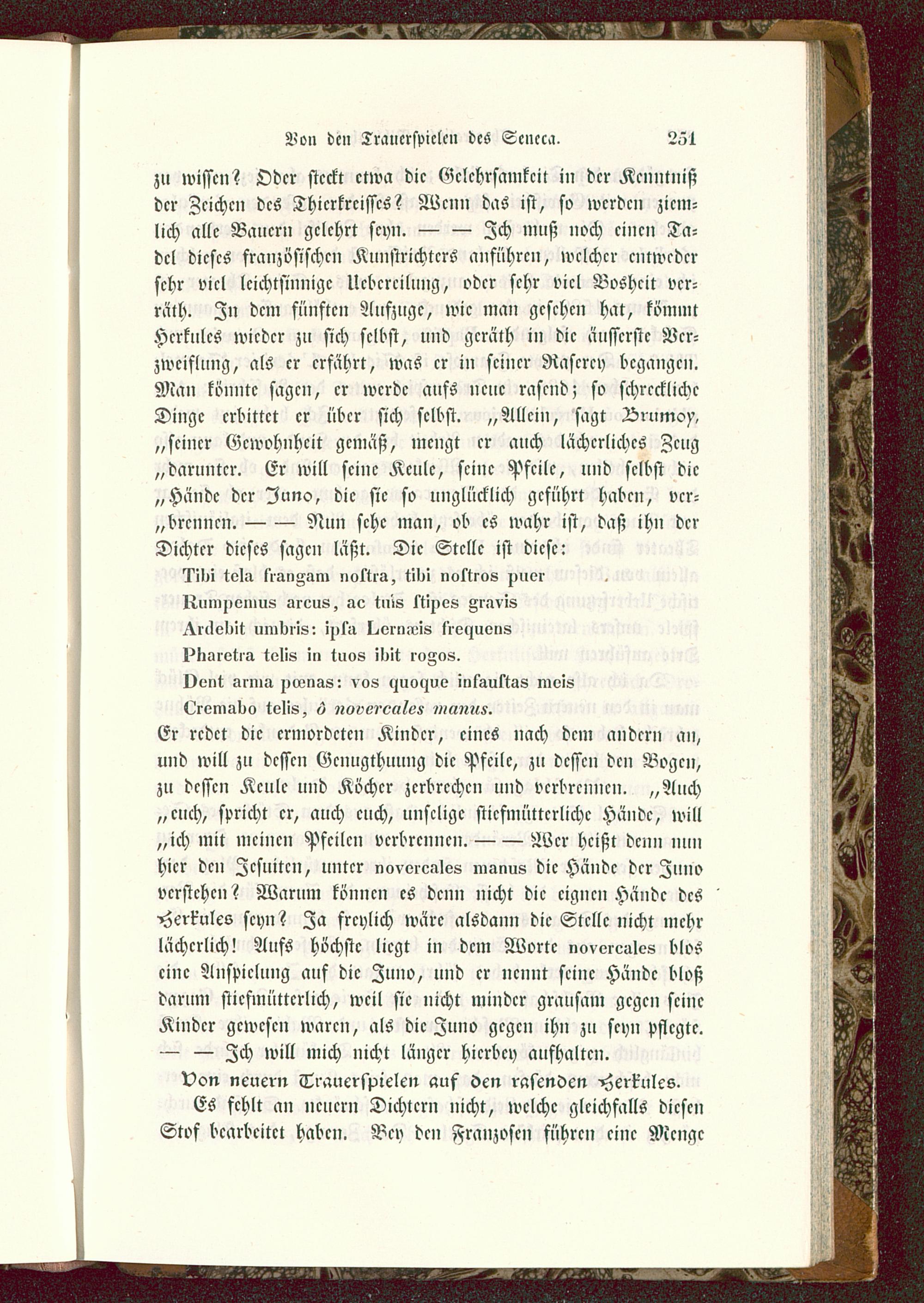 hier den Jesuiten , unter novvrealos manus die Hände der Zunoverstehen ? Warum können es denn nicht die eignen Hände desHerkules seyn? Za freylich wäre alsdann die Stelle nicht mehrlächerlich! Aufs höchste liegt in dem Worte noverc-Ues bloseine Anspielung auf die Zuno, und er nennt seine Hände bloßdarum stiefmütterlich, weil sie nicht minder grausam gegen seineKinder gewesen waren, als die Zuno gegen ihn zu seyn pflegte.— — Zch will mich nicht länger hicrbcy aufhalten.