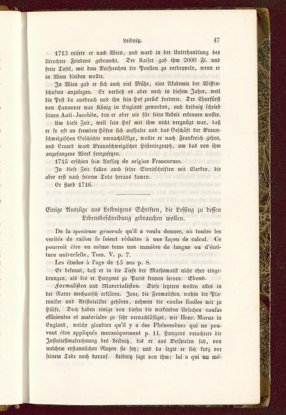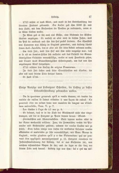 Einige Auszüge aus Lcibnitzens Schriften, die Lcssing zu dessenLebensbeschreibung gebrauchen wollen.